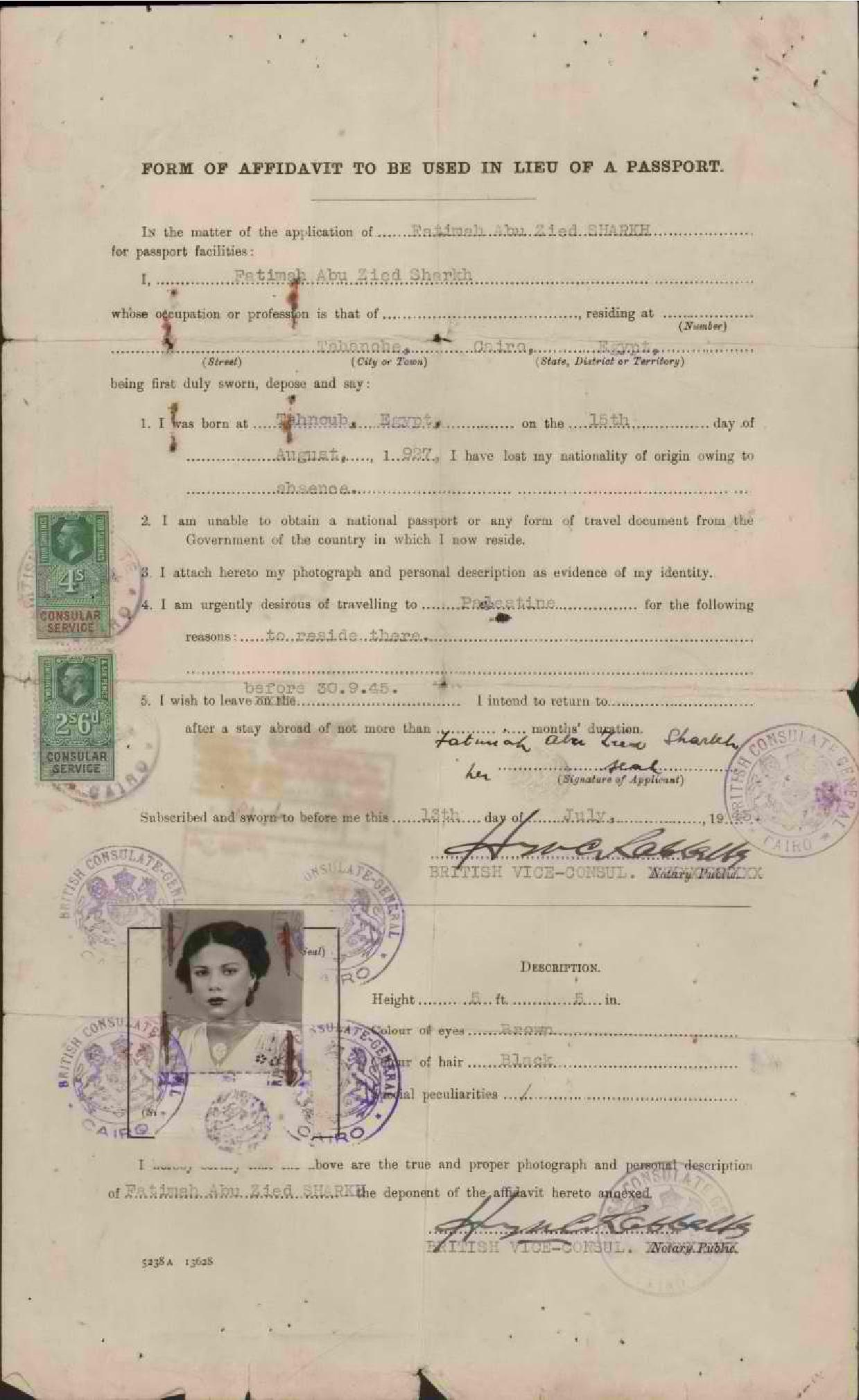 إفادة جواز سفر للسيدة فاطمة أبو شرخ