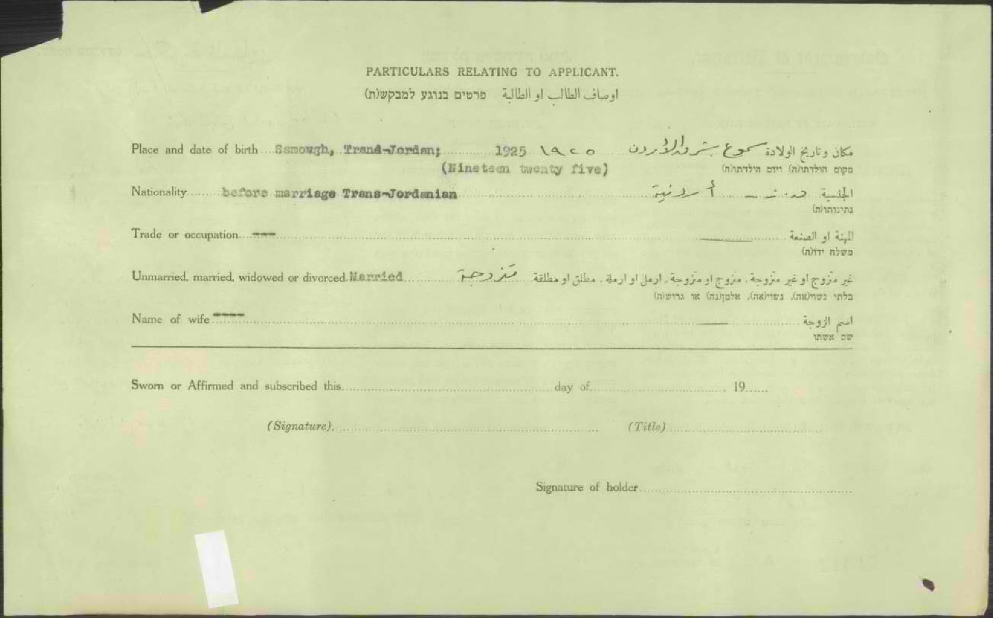 شهادة الجنسية الفلسطينية ل فاطمة حمدان