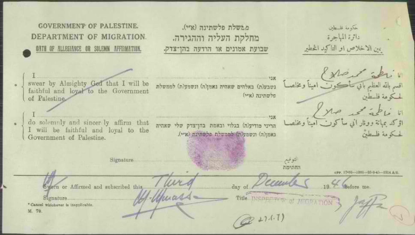 فاطمة محمد صلاح توقع على (يمين الإخلاص) للحصول على الجنسية الفلسطينية