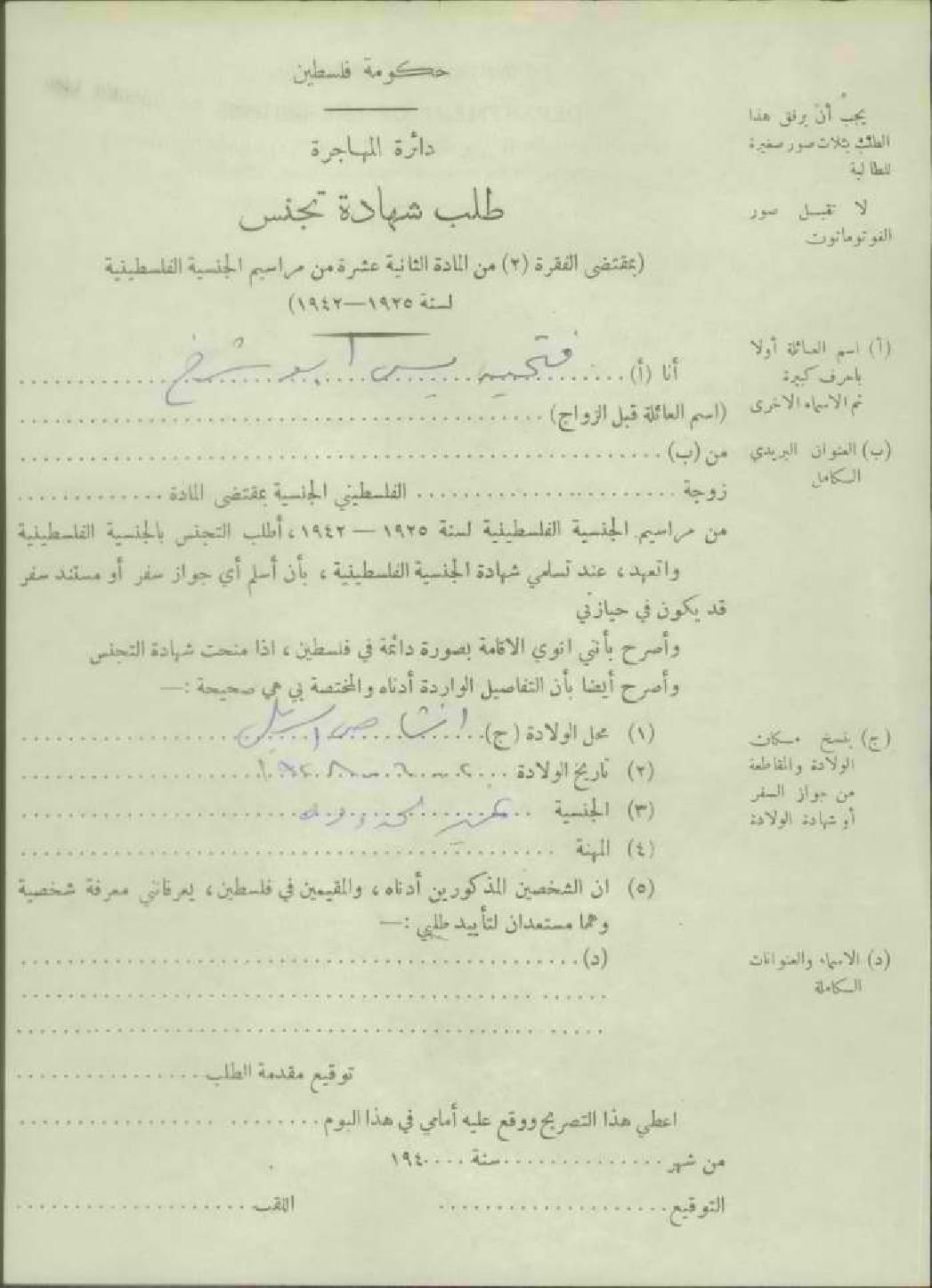 طلب الجنسية الفلسطينية-فتحية أبو شرخ-المجدل/مصر