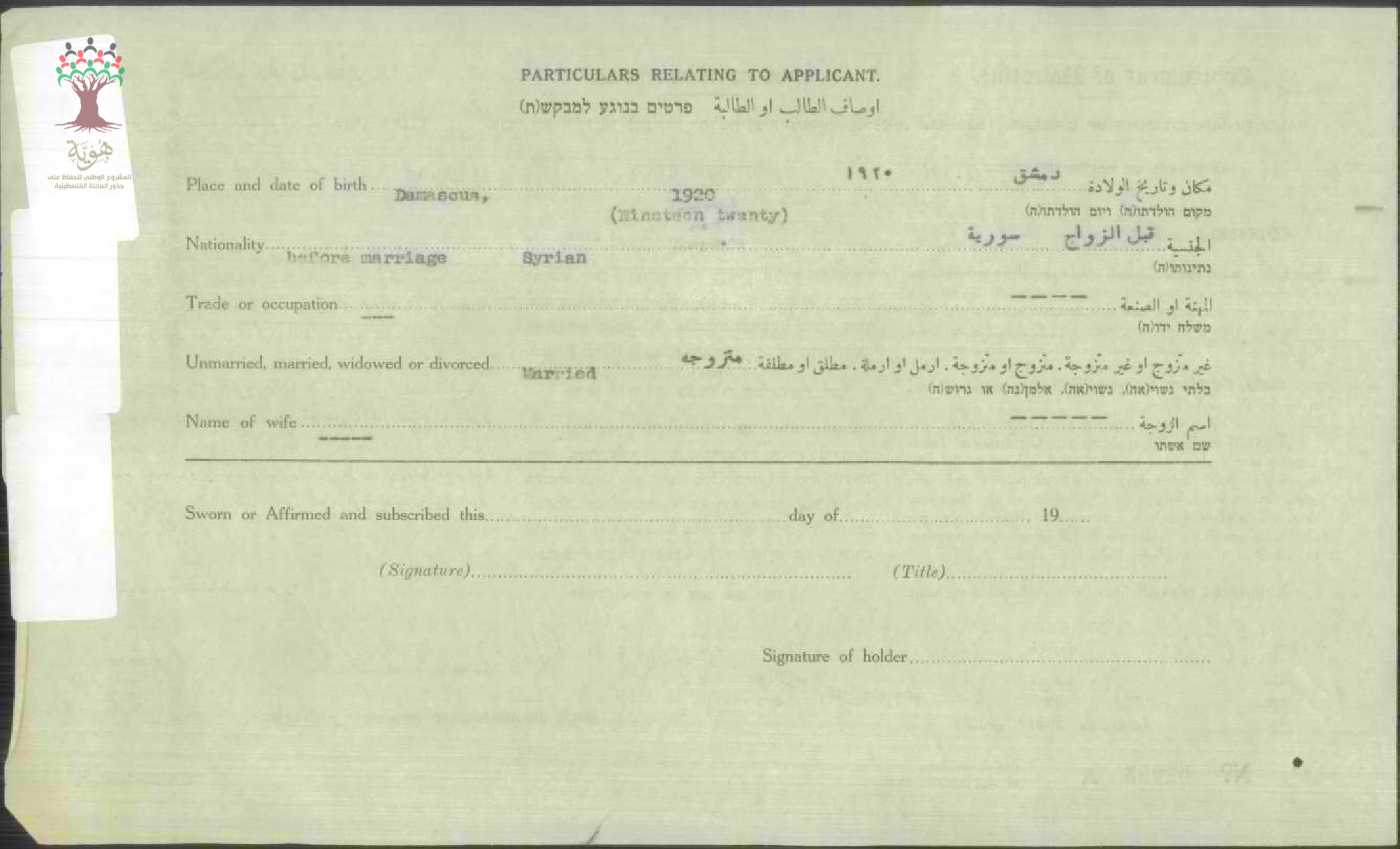 شهادة الجنسية الفلسطينية ل ماجدة شاكوش الفارس