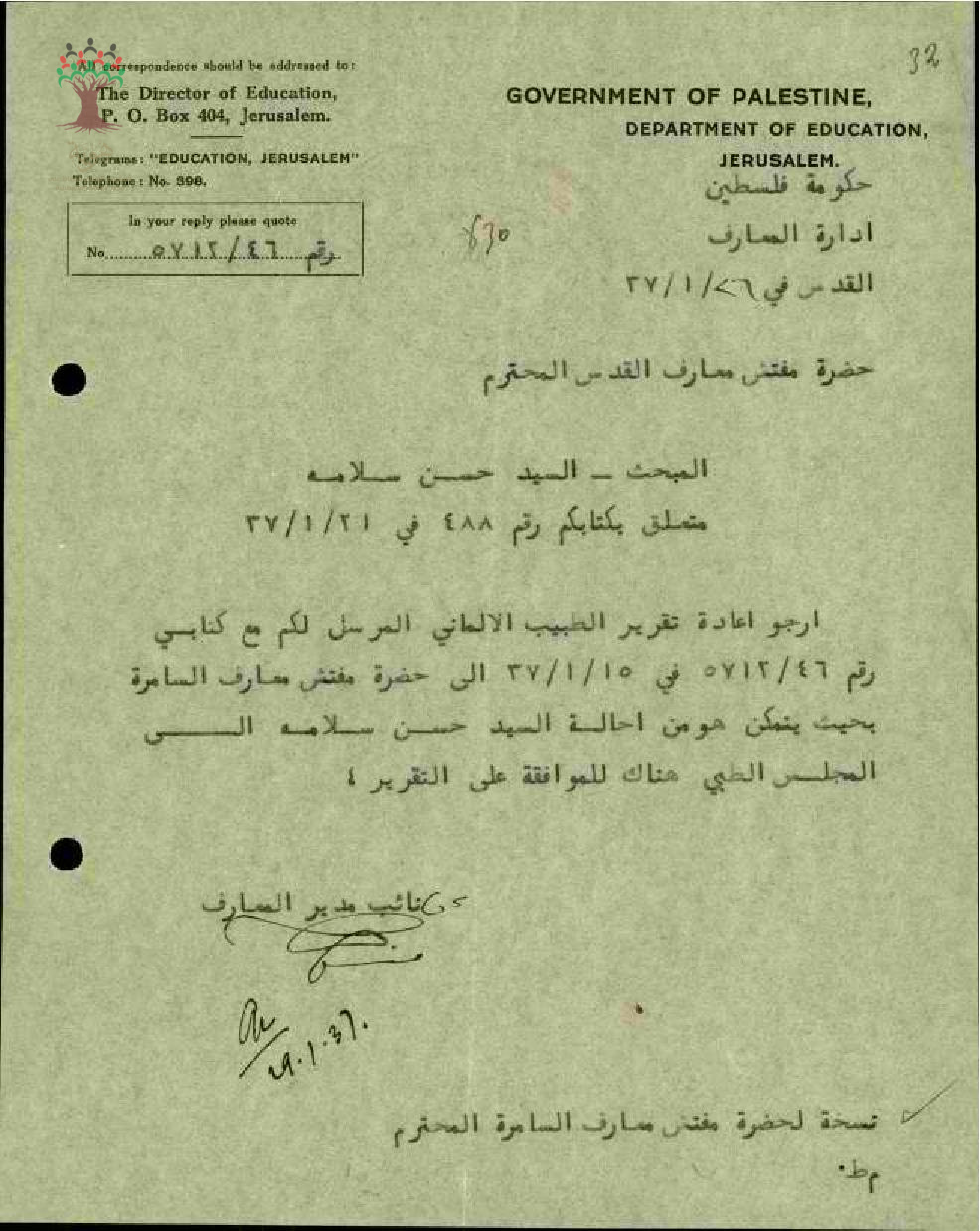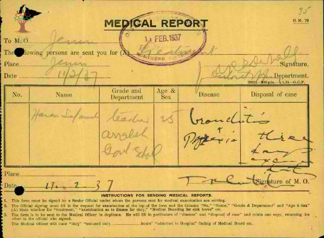 رسائل وتقارير طبية للمعلم حسن سلامة بخصوص مرضه وإجراء عملية الزائدة الدودية