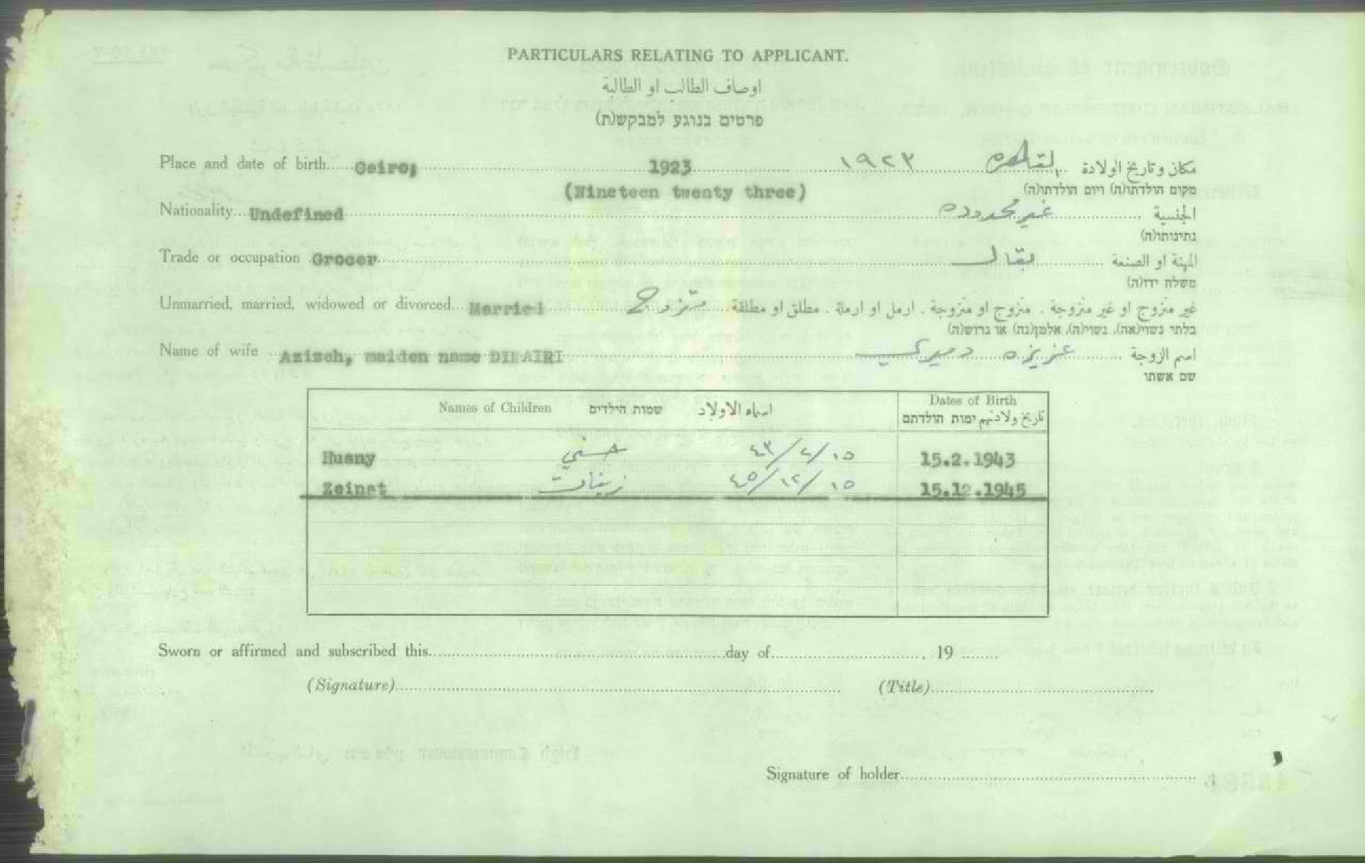شهادة الجنسية الفلسطينية ل مصطفى علما