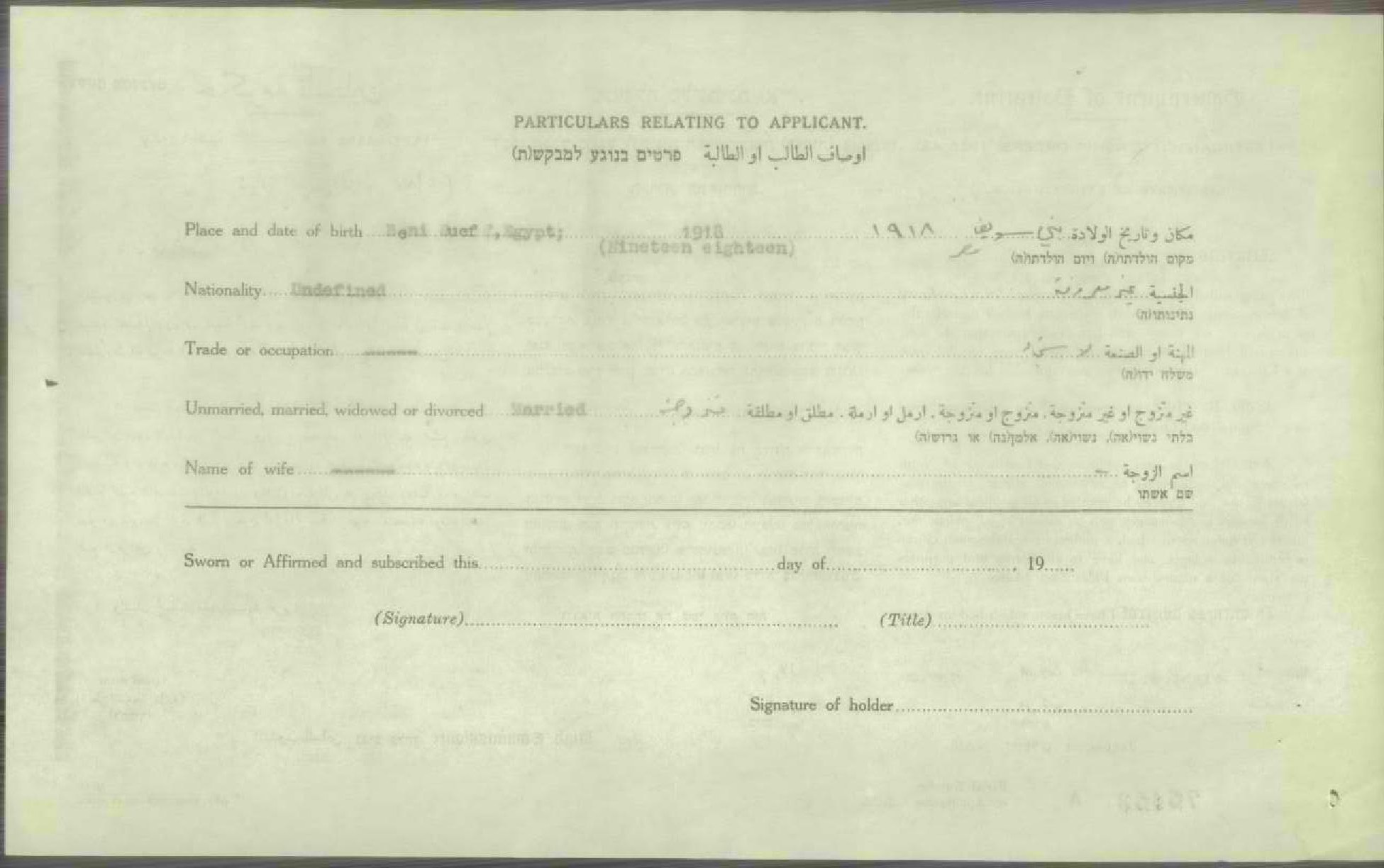 شهادة الجنسية الفلسطينية ل فاطمة مخيمر الكرد