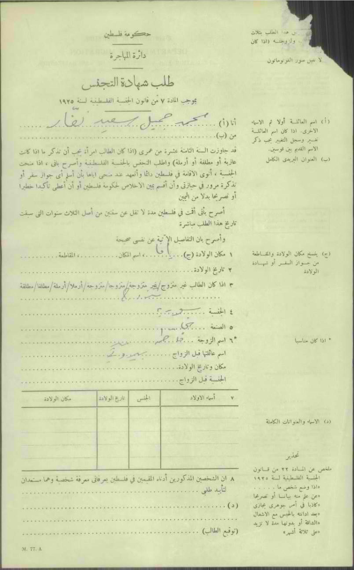 طلب الجنسية الفلسطينية-محمد النفار-يافا/سوريا