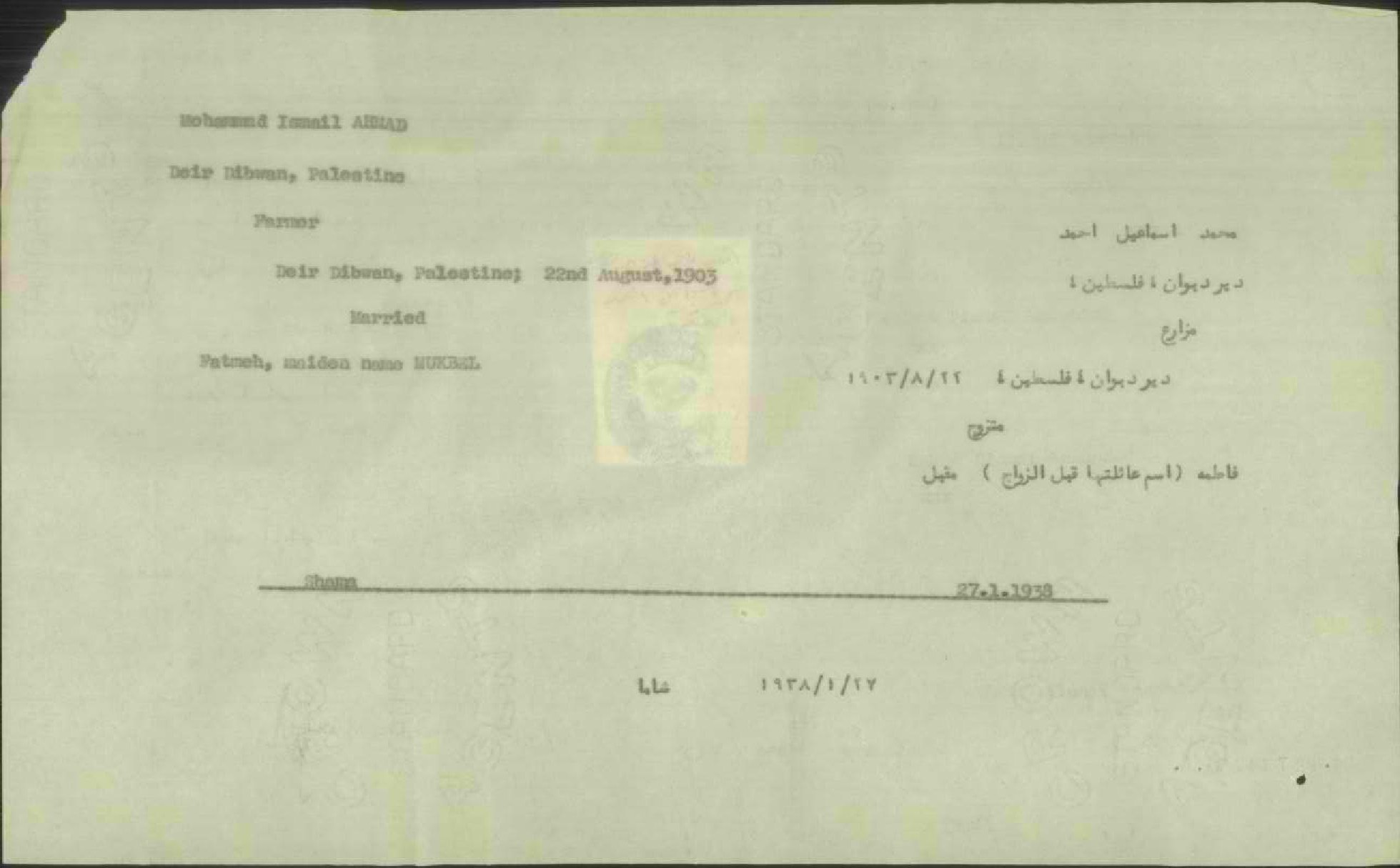 ورقة بيانات محمد إسماعيل أحمد المرفقة بطلب الجنسية