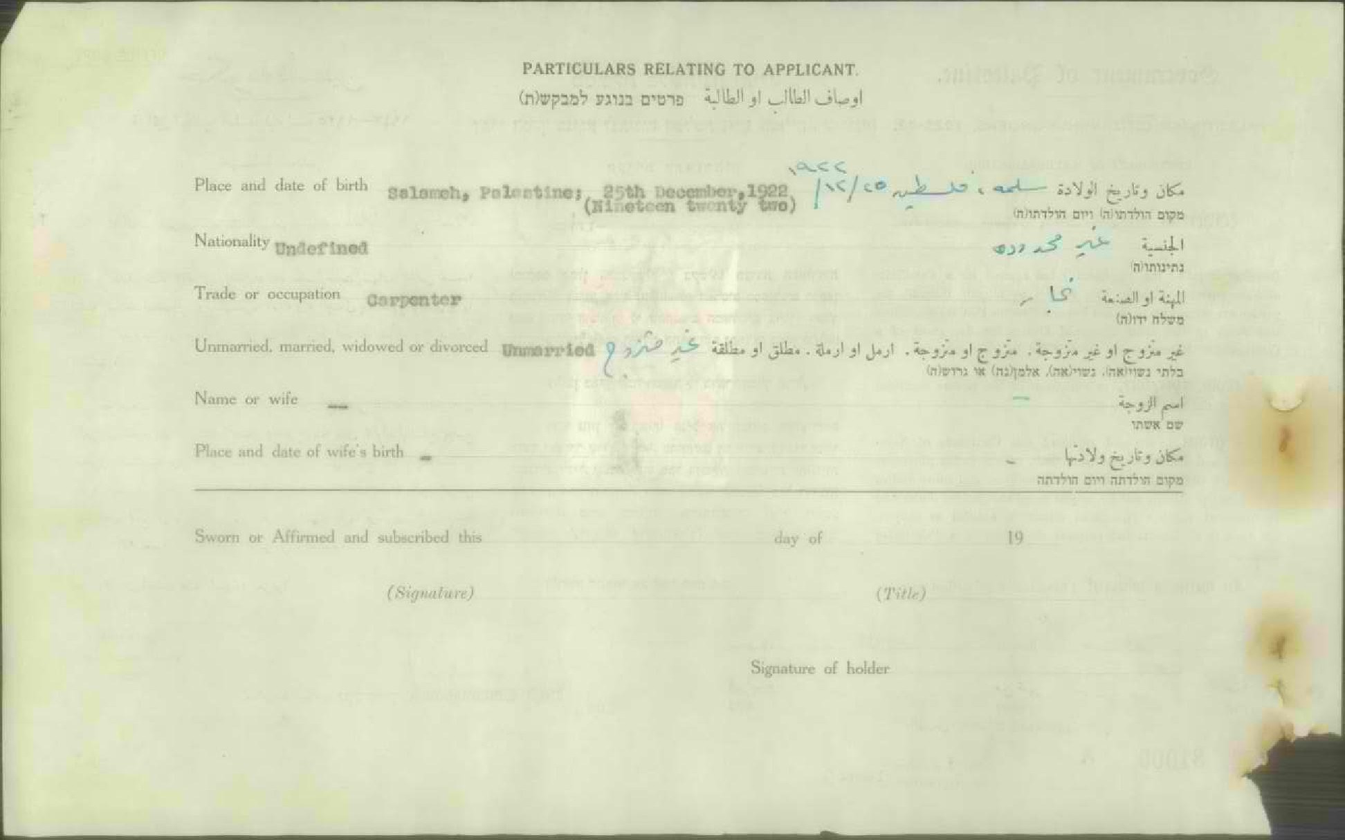 شهادة الجنسية الفلسطينية ل محمود سعيد الأفغاني