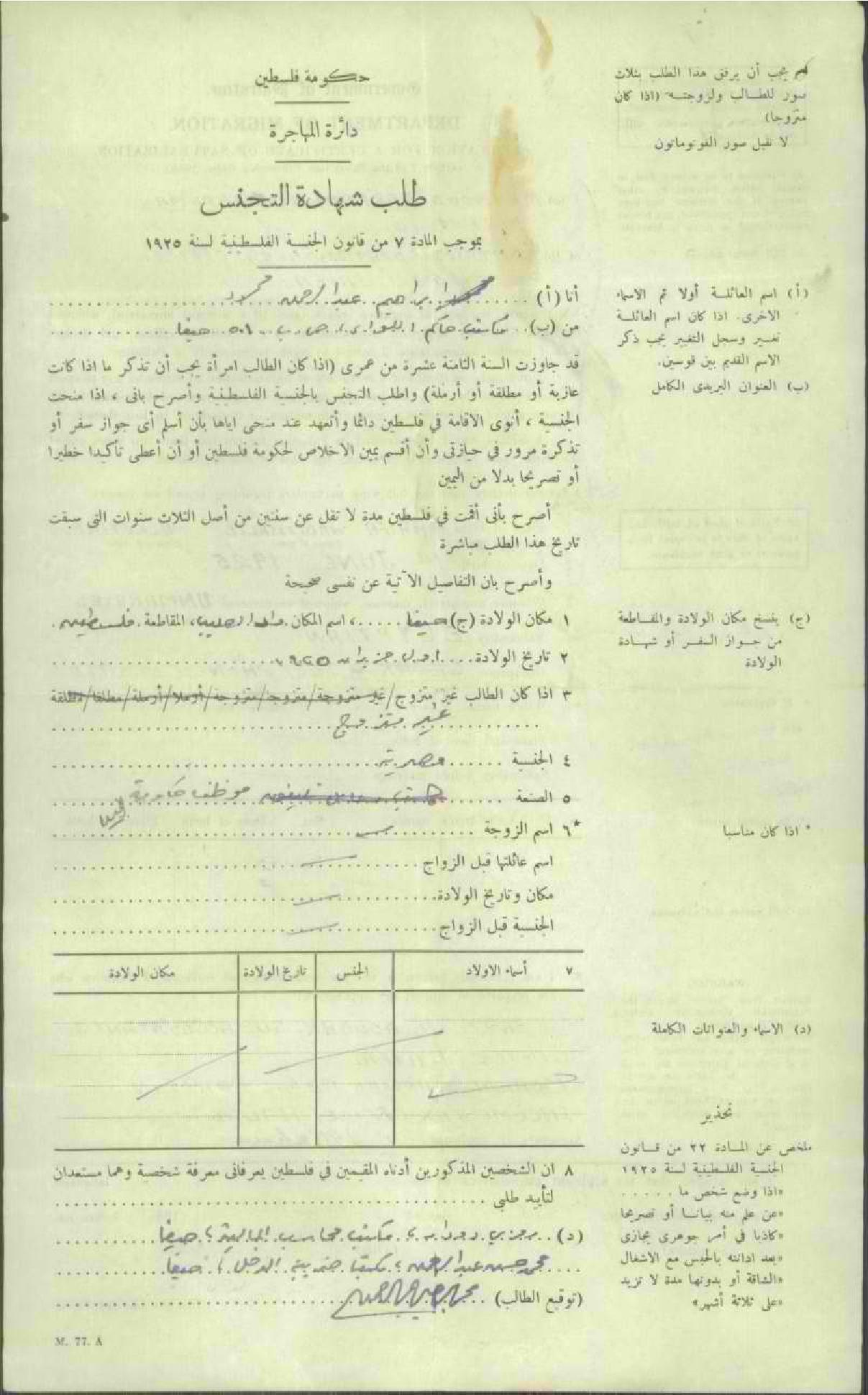 طلب الجنسية الفلسطينية-محمود عبد الرحمن-حيفا/مصر