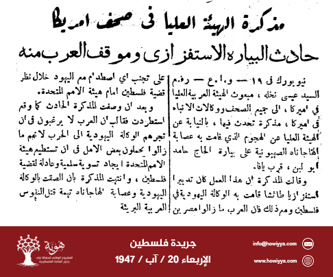 حادث البيارة الاستفزازي وموقف العرب منه 20/8/1947