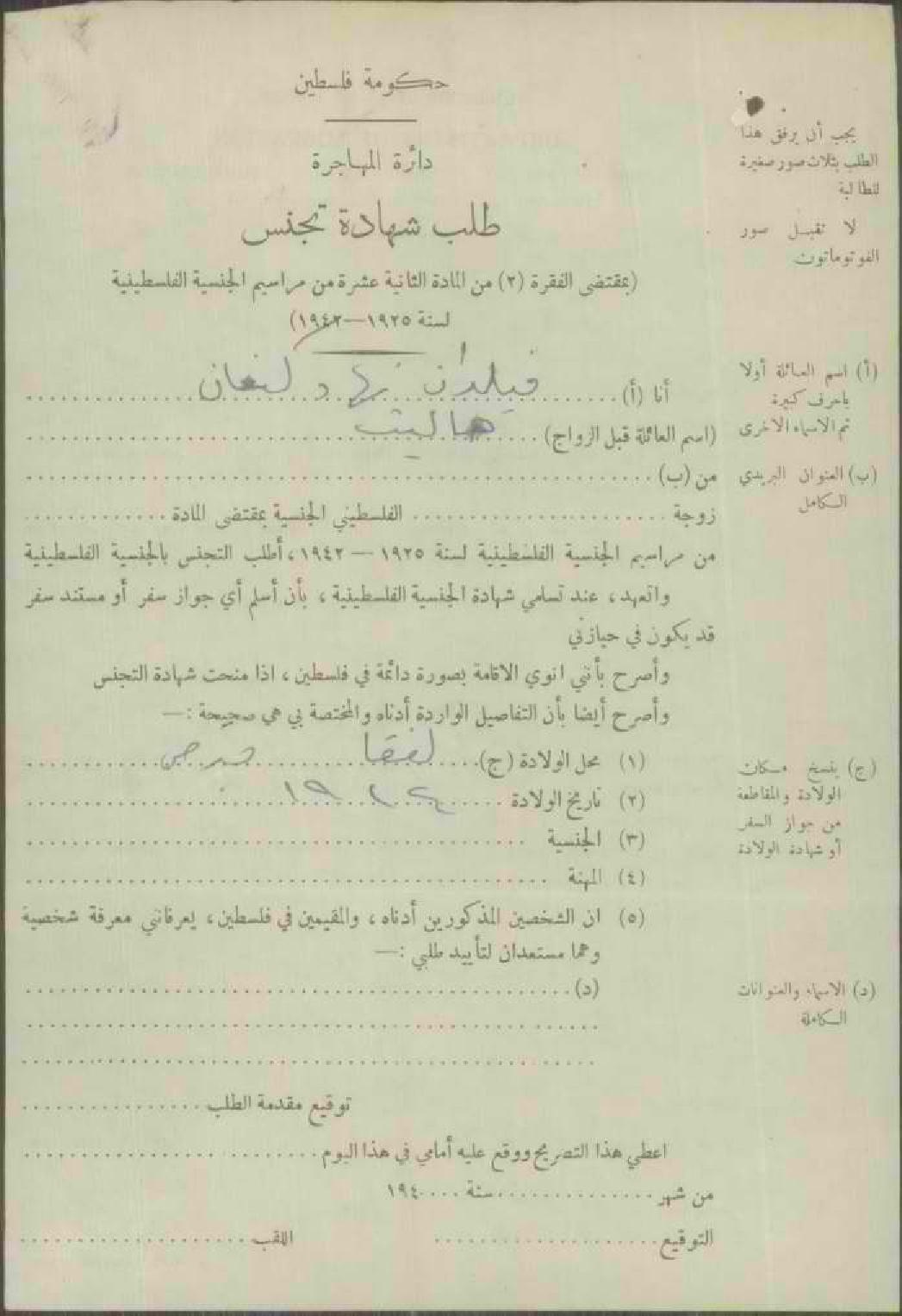 طلب الجنسية الفلسطينية-فيلدان كنعان-يافا/قبرص