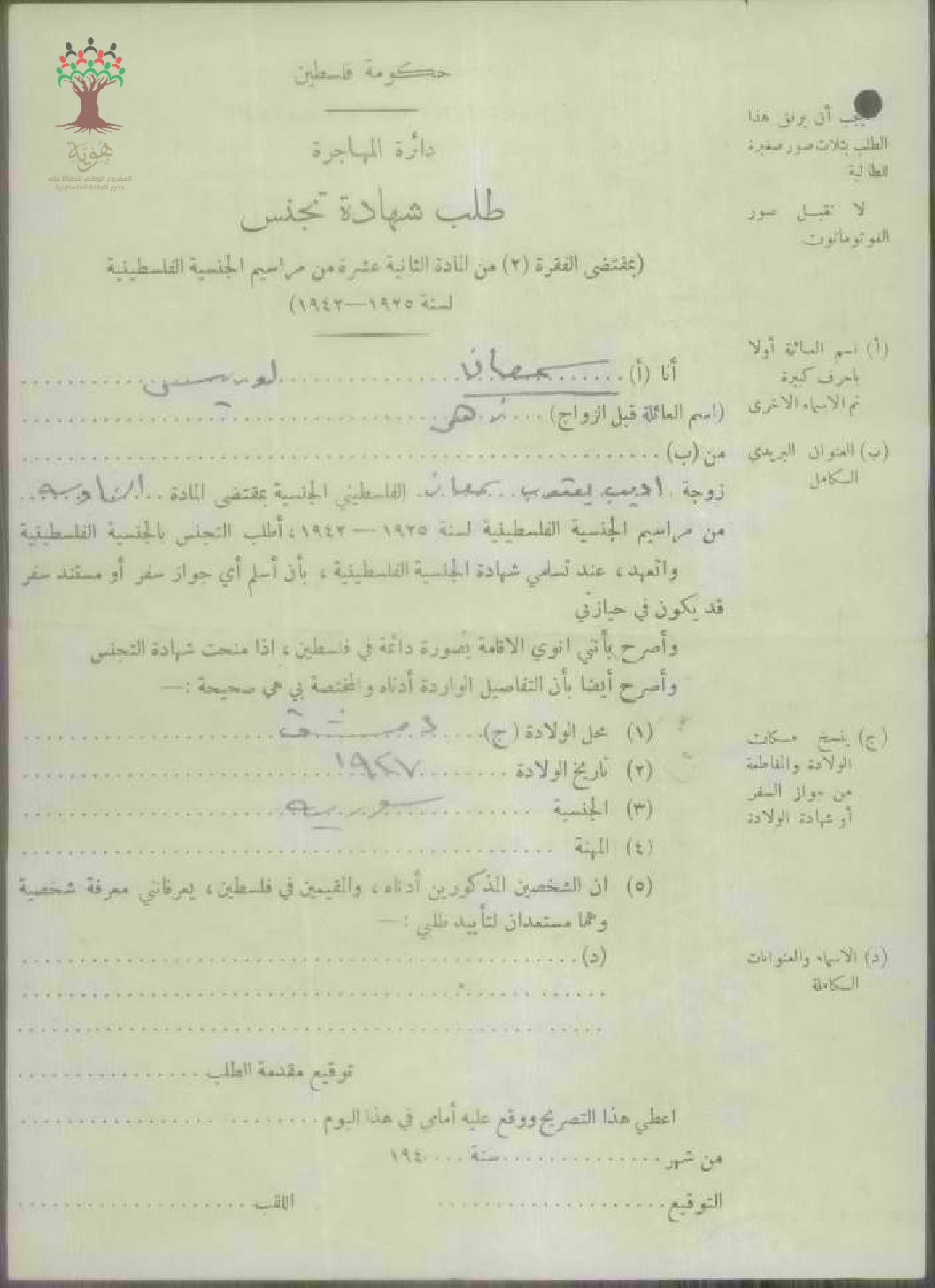 طلب الجنسية الفلسطينية-لوريس سمعان-القدس/سوريا