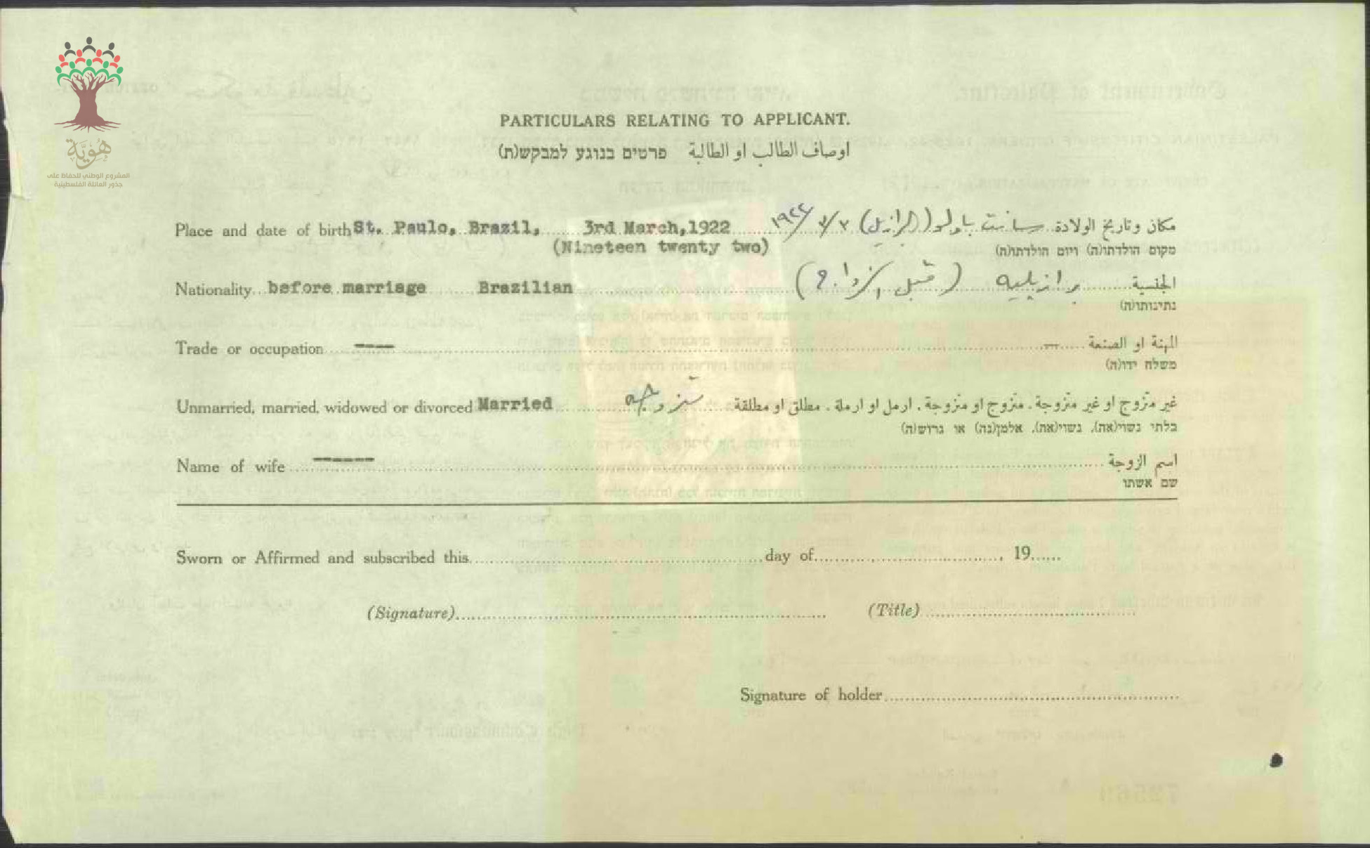 شهادة الجنسية الفلسطينية ل اسبرانس عواد ماضي