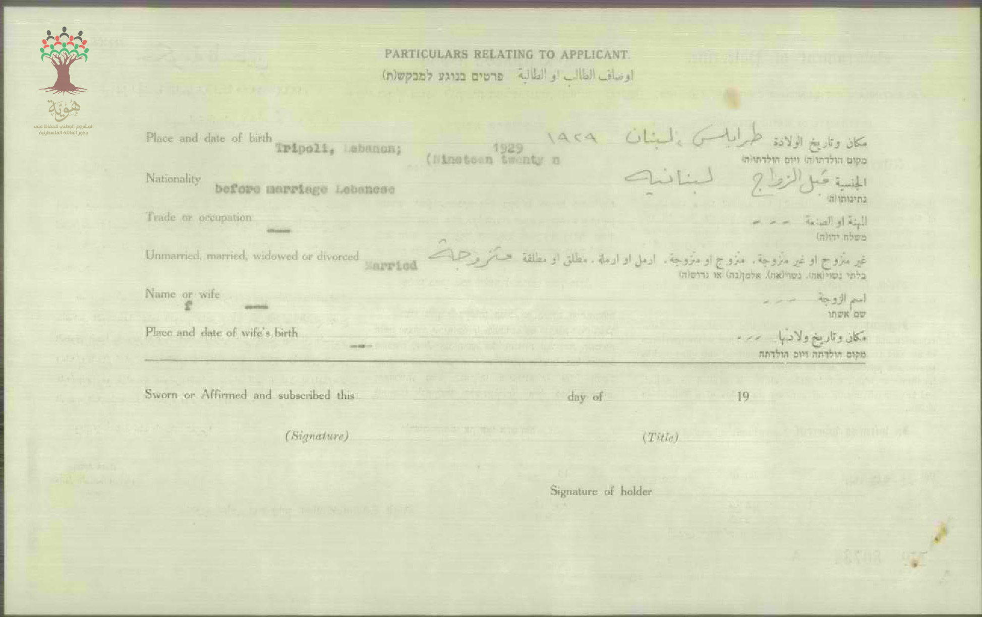 شهادة الجنسية الفلسطينية ل عصمت الزين حليحل