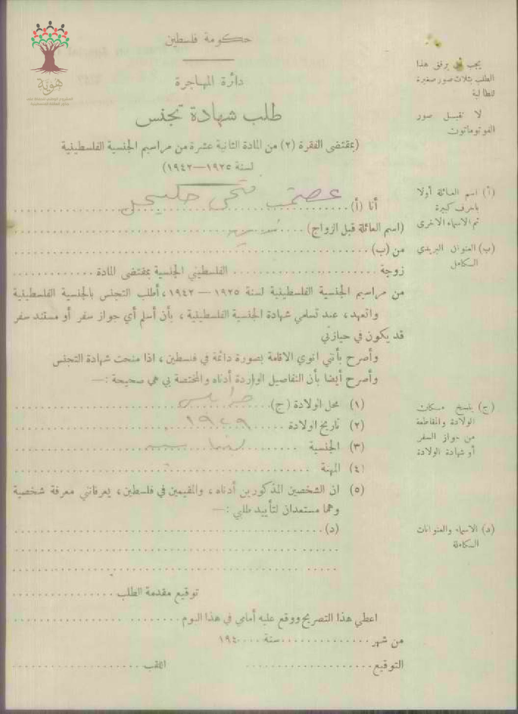 طلب الجنسية الفلسطينية-عصمت الزين حليحل-طولكرم/لبنان