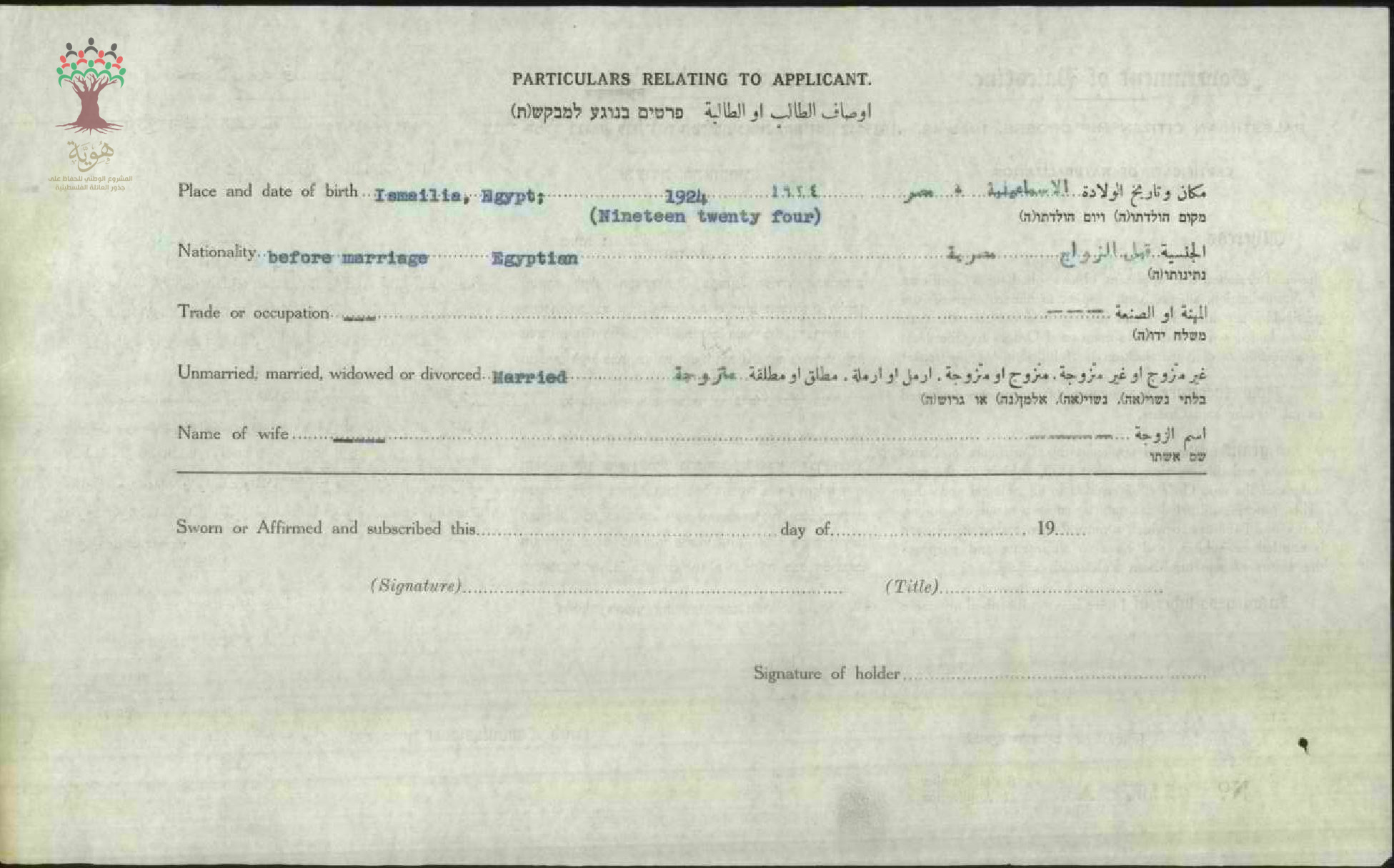 شهادة الجنسية الفلسطينية فايقة علي مرتضى