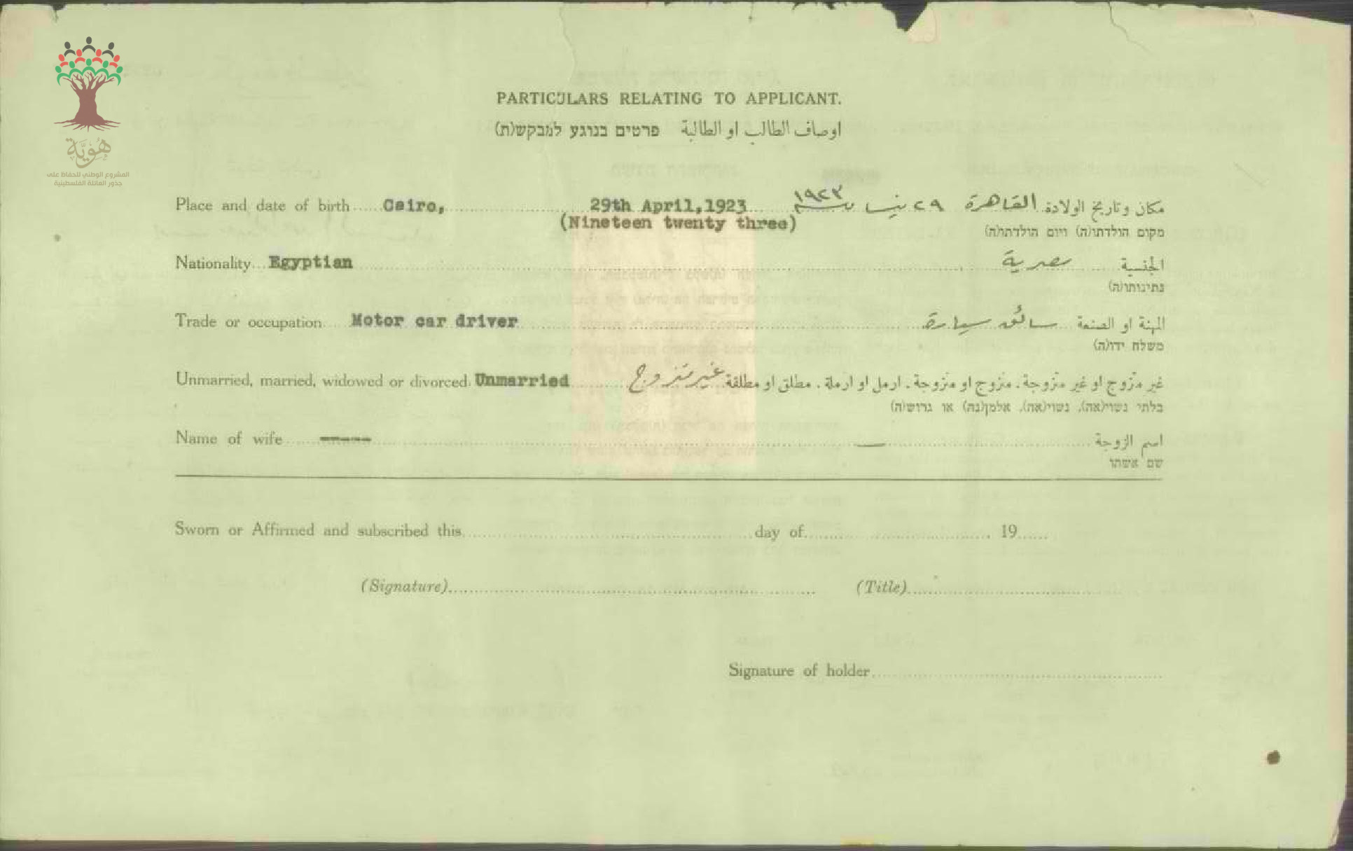 شهادة الجنسية الفلسطينية ل يوسف السيد