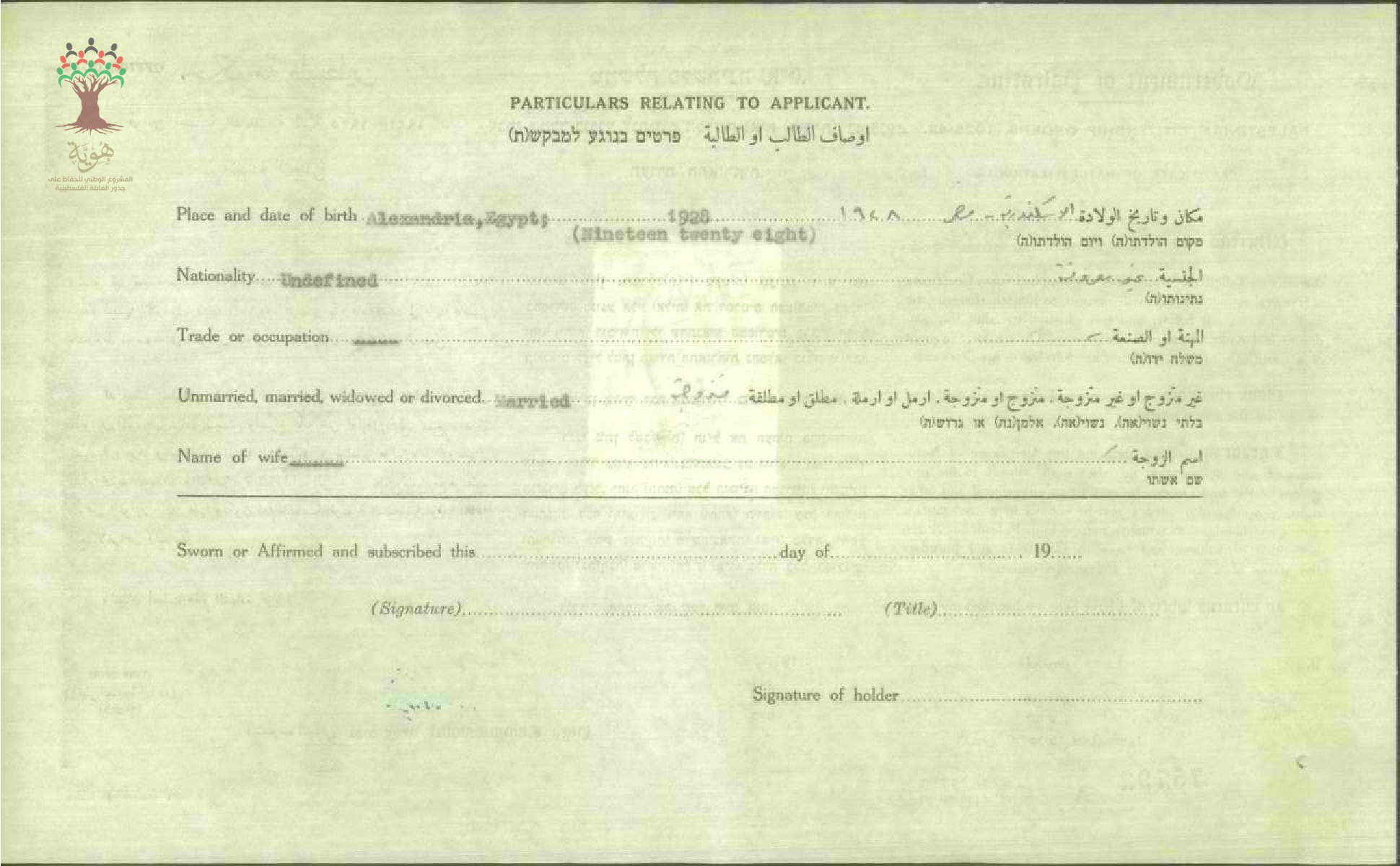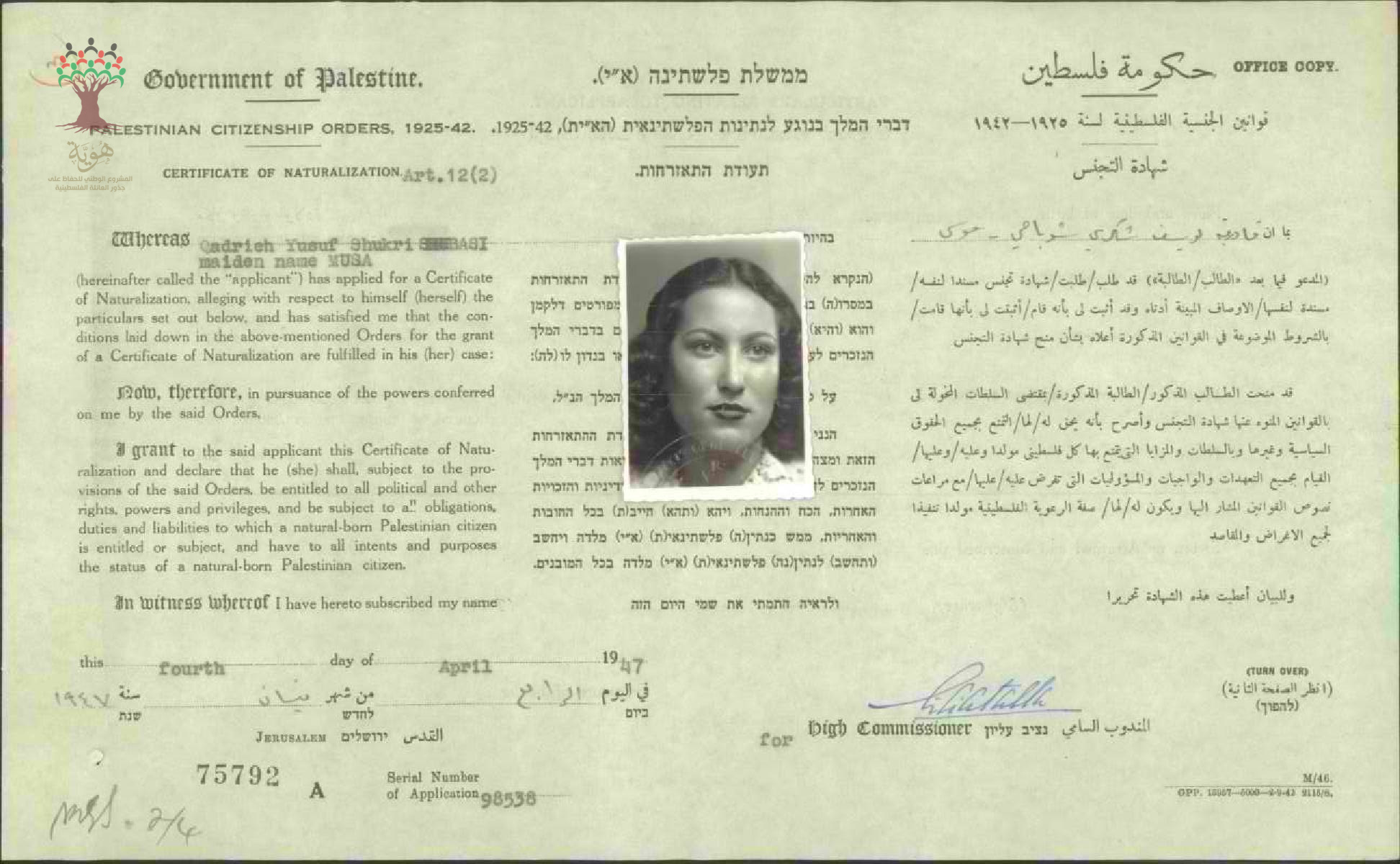 شهادة الجنسية الفلسطينية ل قدرية موسى شوباصي