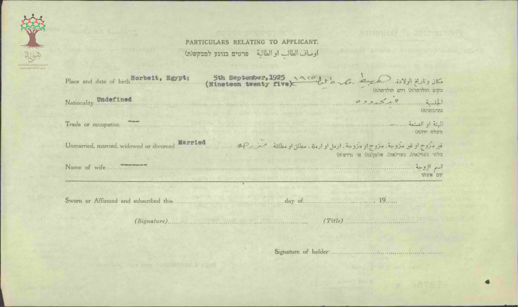 شهادة الجنسية الفلسطينية ل نجية علي البنا