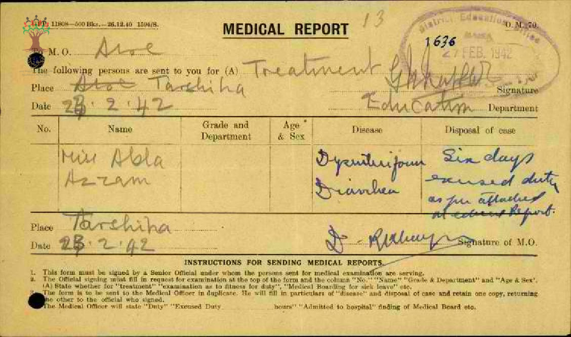 تقرير طبي عن غياب المعلمة عبلة عزام-مدرسة ترشيحا للبنات