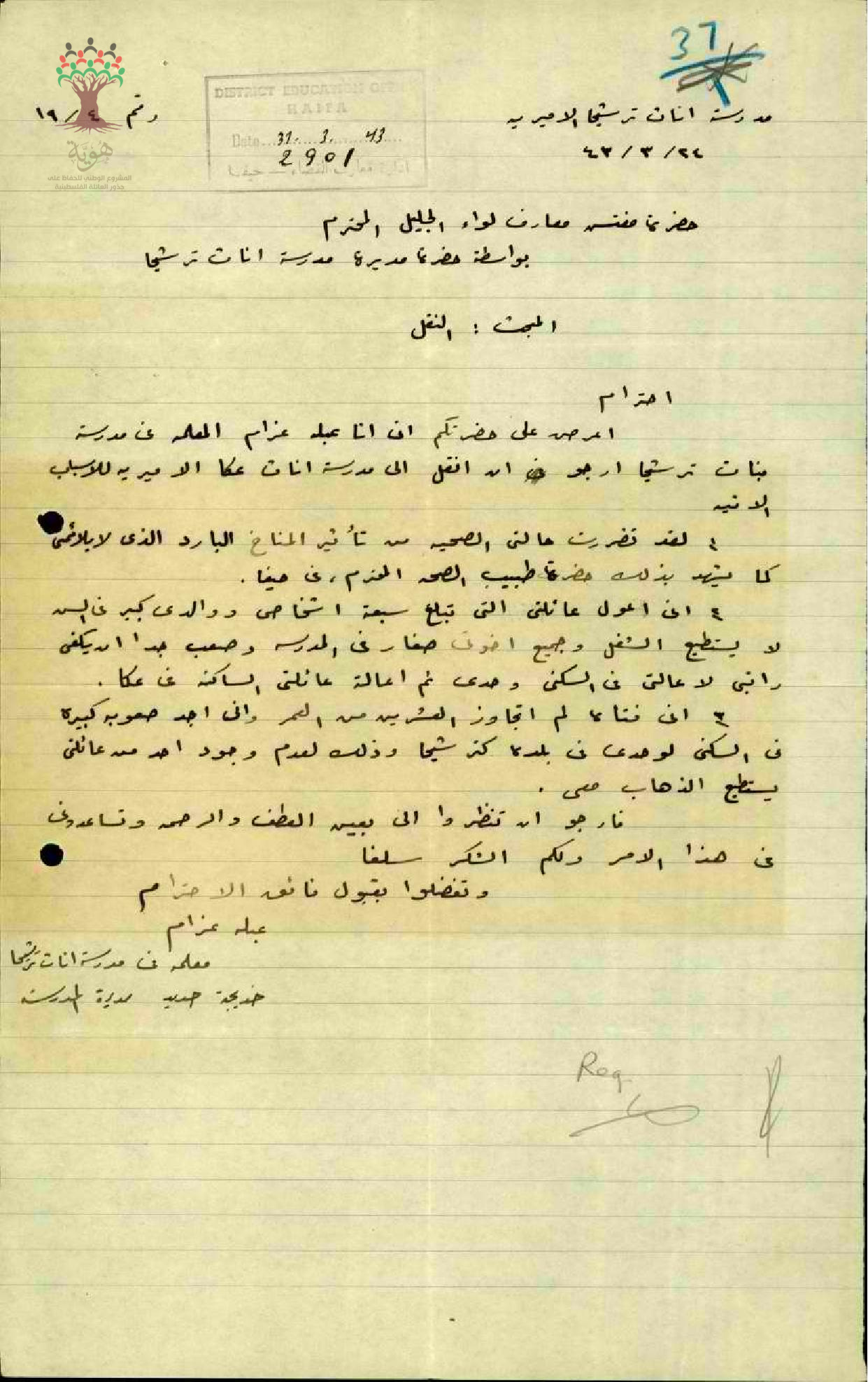 طلب نقل مقدم من المعلمة عبلة عزام من مدرسة ترشيحا للبنات