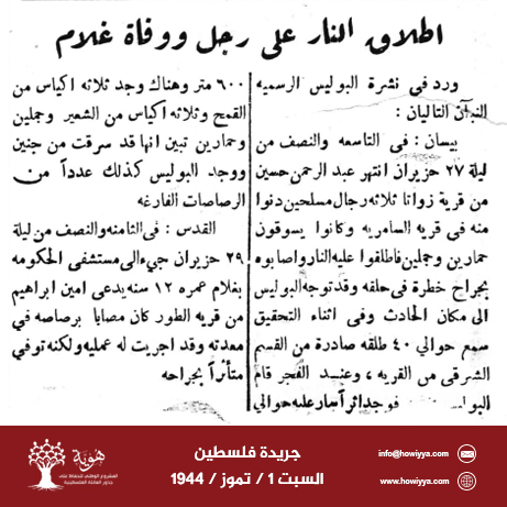 اطلاق النار على رجل ووفاة غلام 1/7/1944