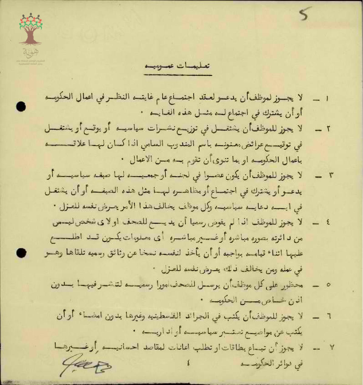 توقيع المعلم محمد رشدي الخياط علة التعليمات العمومية لإدارة المعارف