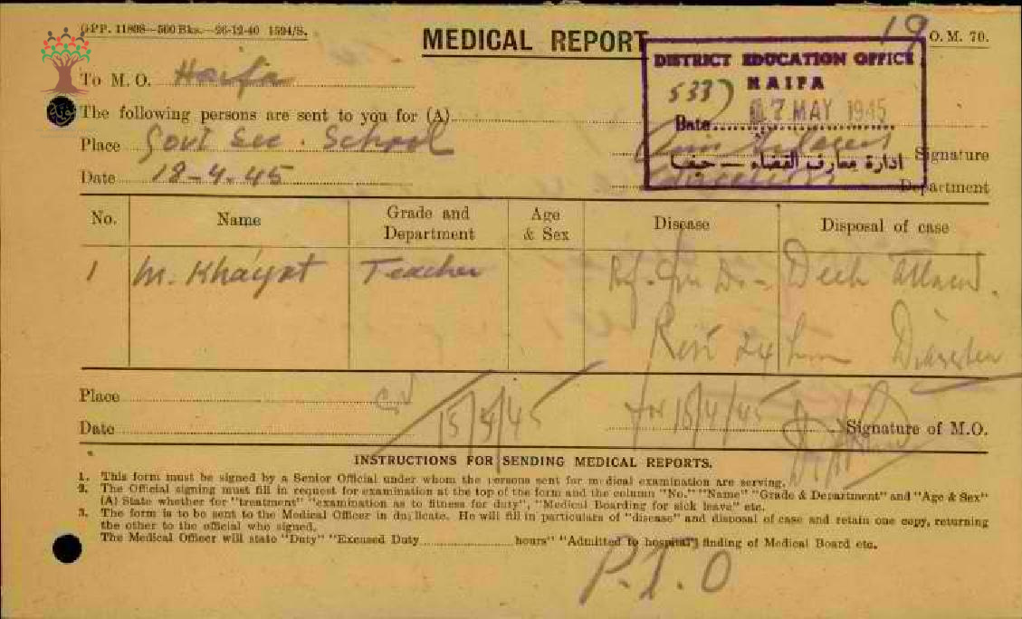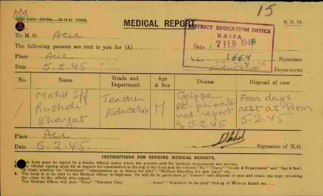 مجموعة تقارير طبية للمعلم محمد رشدي الخياط من سنة 1945 الى سنة 1948