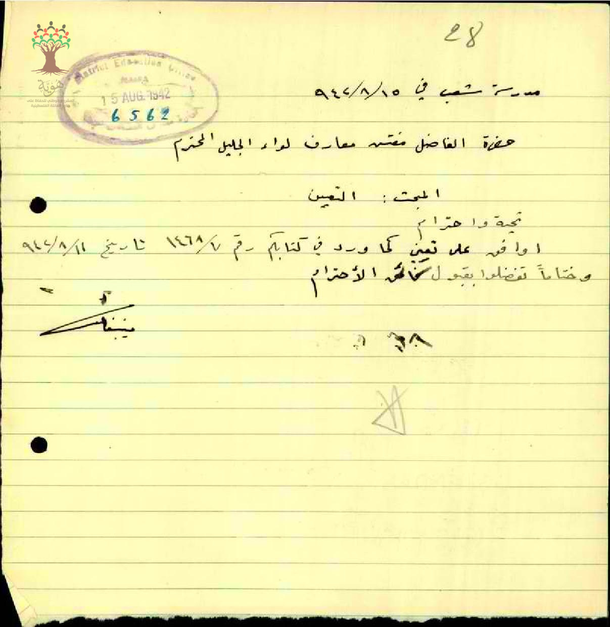 موافقة المعلم منيب فاعور على قرار تعيينه في الدراجت الغير نظظامية في مدرسة شعب قضاء عكا