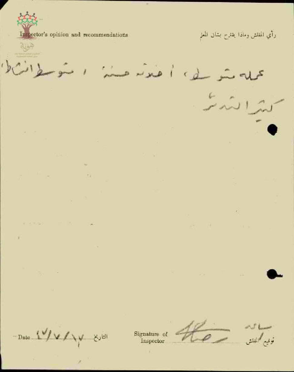 تقرير تفصيلي عن أداء المعلم عبد الرزاق الشامي في مدرسة الدامون سنة 1947