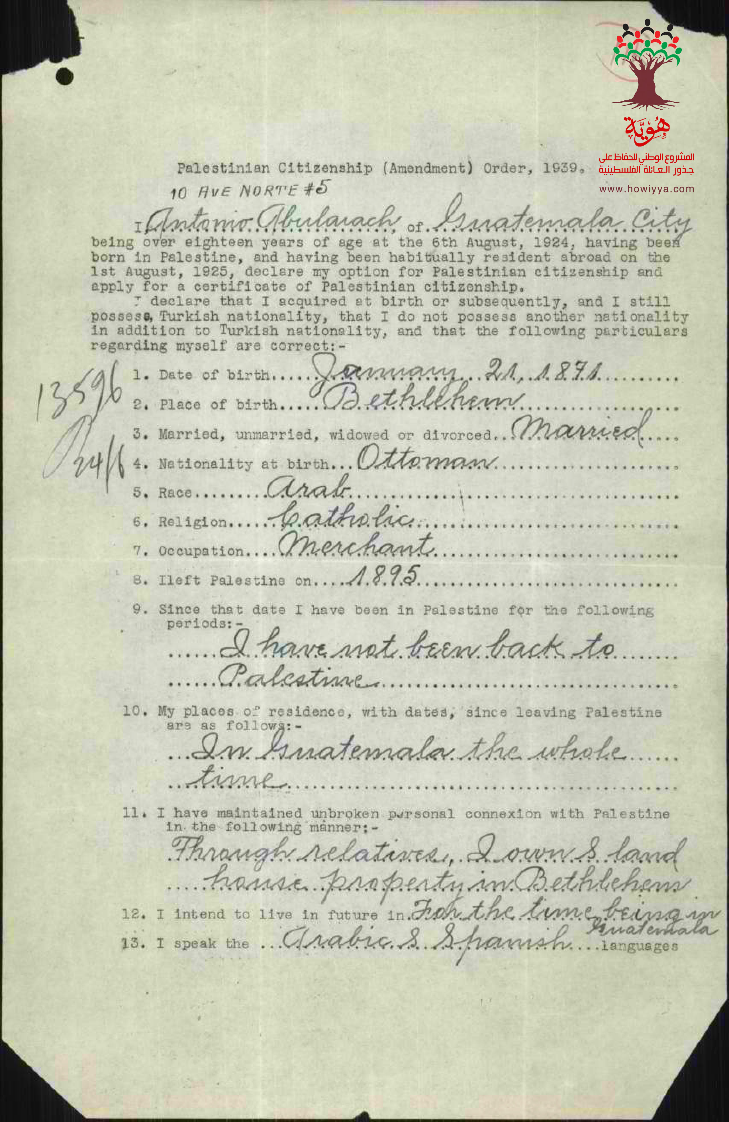 طلب الجنسية - انطون ابو العراج مواليد 1871- بيت لحم - غواتيمالا