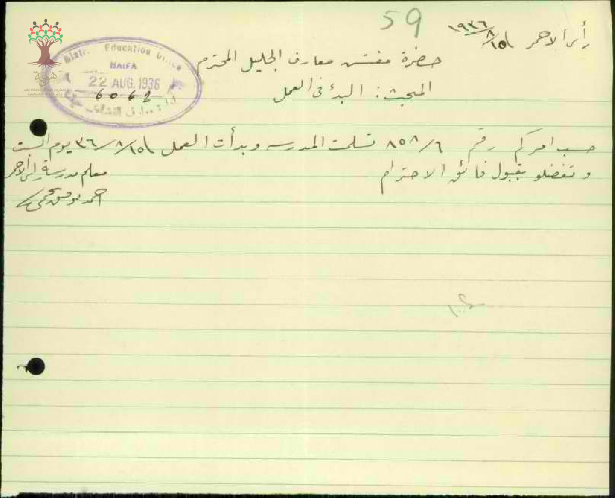 رسالة من مدير مدرسة الراس الأحمر بخصوص البدء بالعمل