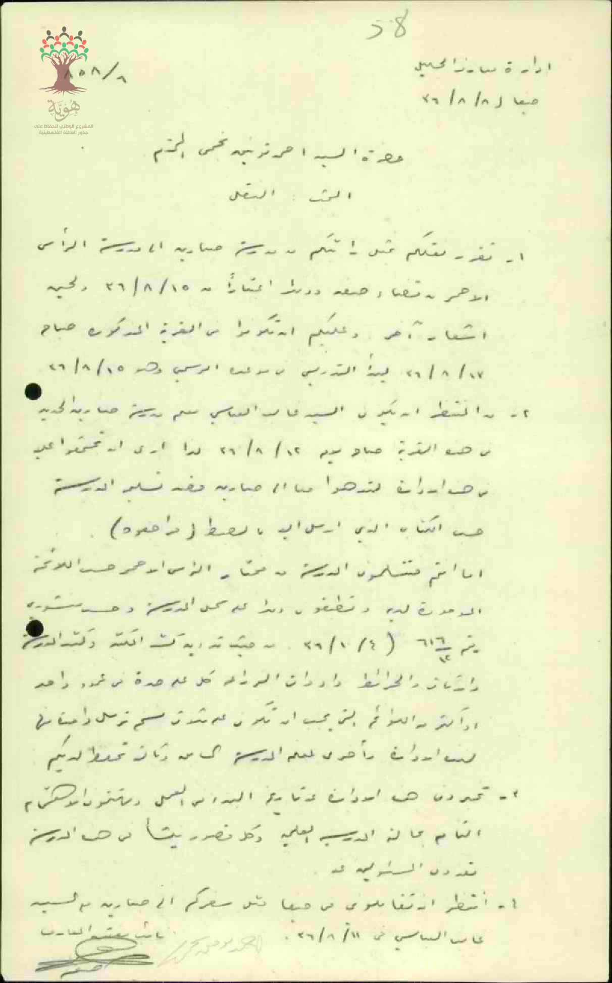 رسالة من نائب معارف الجليل إلى المعلم أحمد النجمي بخصوص النقل