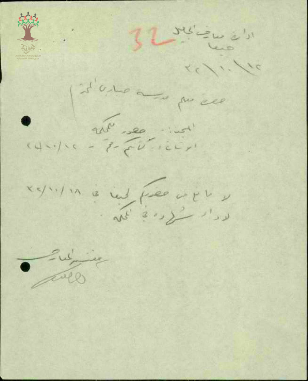 رساله من حضرة مفتش معارف لواء الجليل الى مدير مدرسة صابرين بخصوص الذهاب الى محكمه حيفا لاداء شهادة