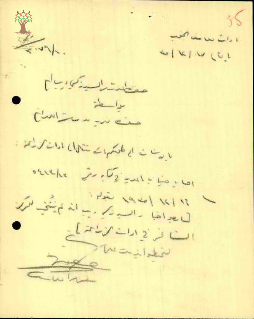 رسالة من مفتش المعارف الى المعلم زكي ديب يخبره بأنه لم يتم انتخابه للمركز الشاغر في ادارة الزراعة