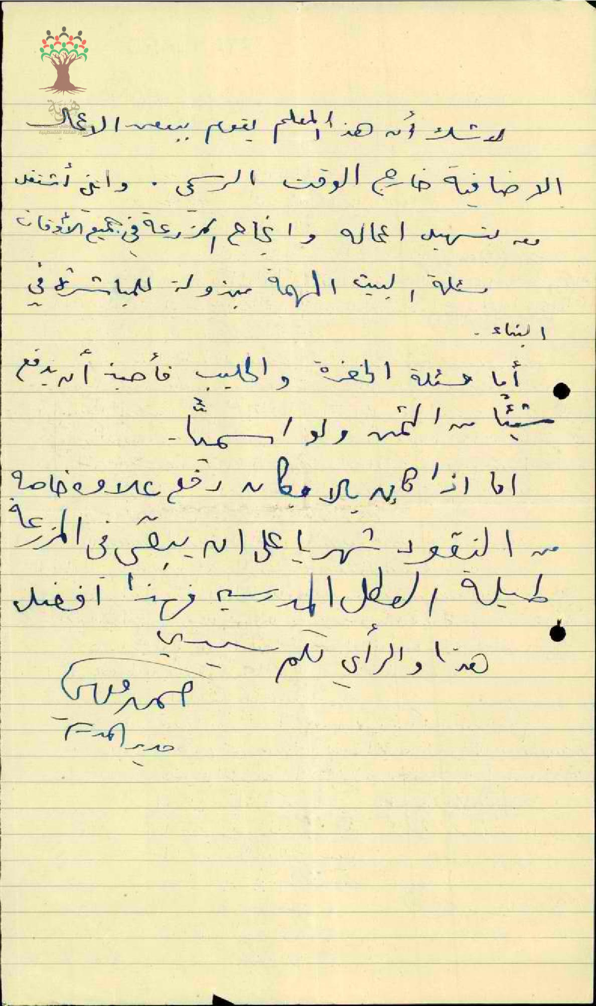 رسالة من مدير مدرسة بيسان يبحث عمل المعلم محمد عكاشة في حديقة المدرسة