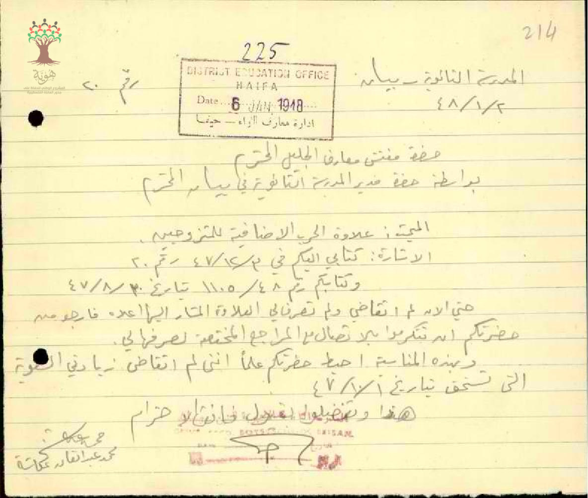 رسالة من المعلم محمد عكاشة إلى مفتش المعارف بخصوص عدم صرف العلاوة المشار إليها وعدم تقاضيه الزيادة السنوية المستحقة