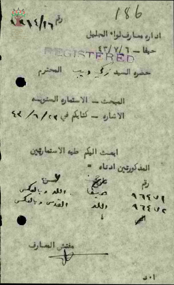 رسالة من مفتش المعارف الى المعلم زكي ديب بخصوص الاستمارة السنوية