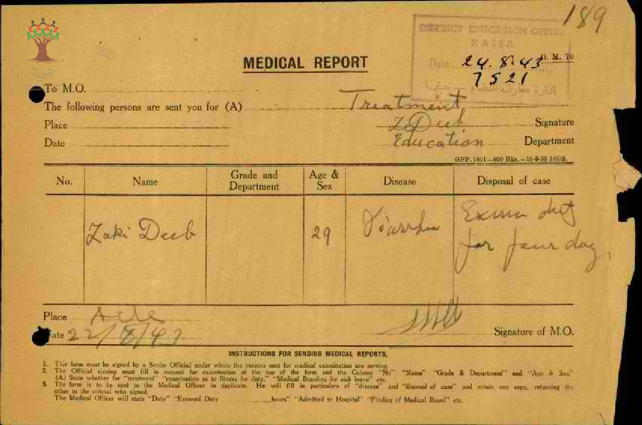 تقرير طبي عن غياب المعلم زكي ديب-مدرسة عبلين