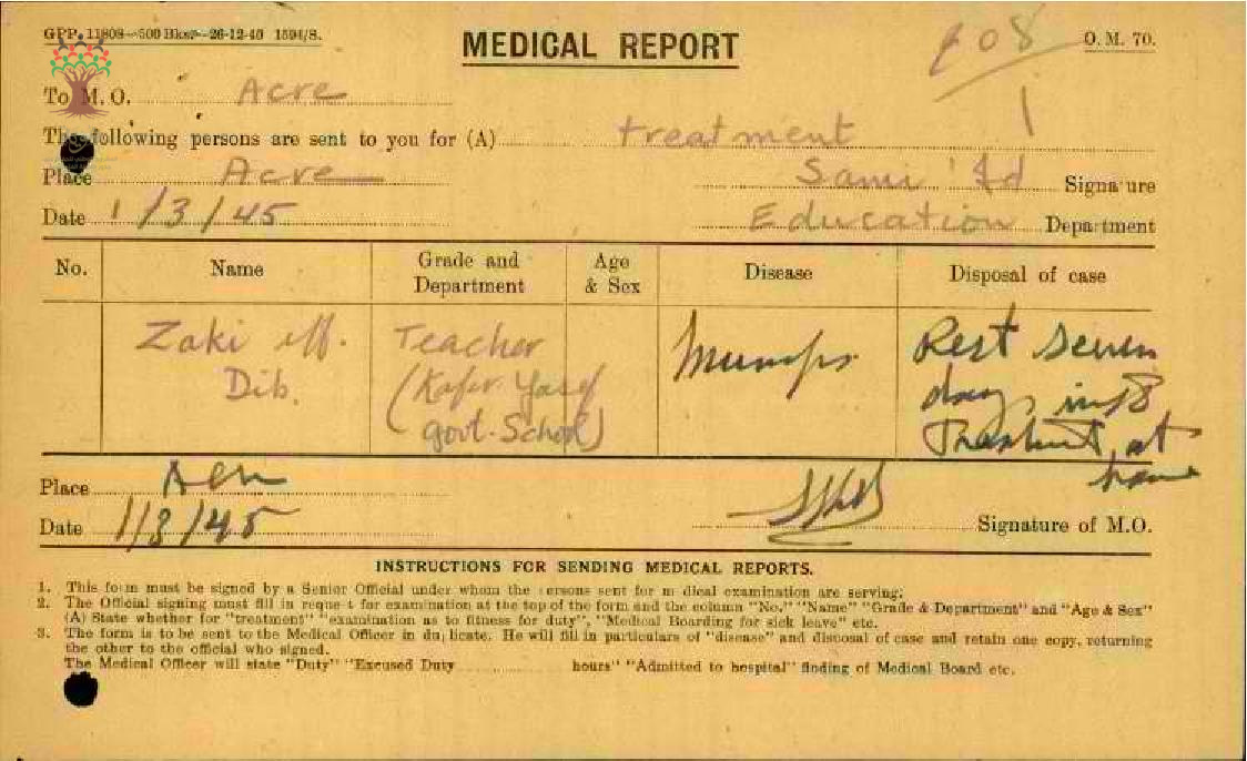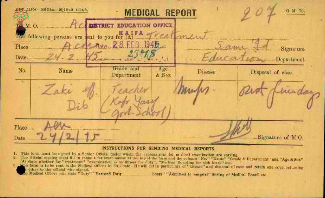 تقارير طبية عن غياب المعلم زكي ديب مدرسة كفر ياسيف-الرامة