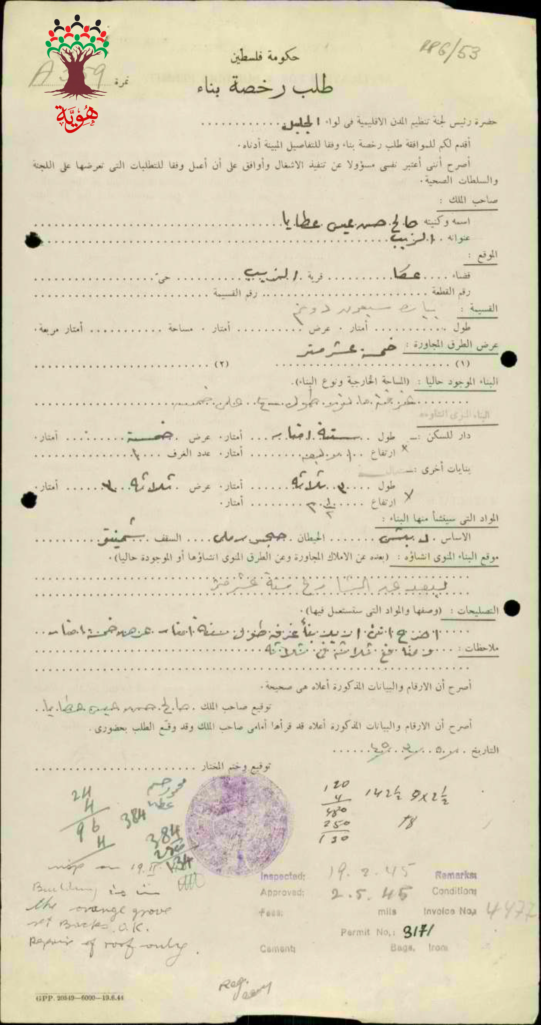 طلب رخصة بناء في الزيب - صالح حسن عيسى عطابا