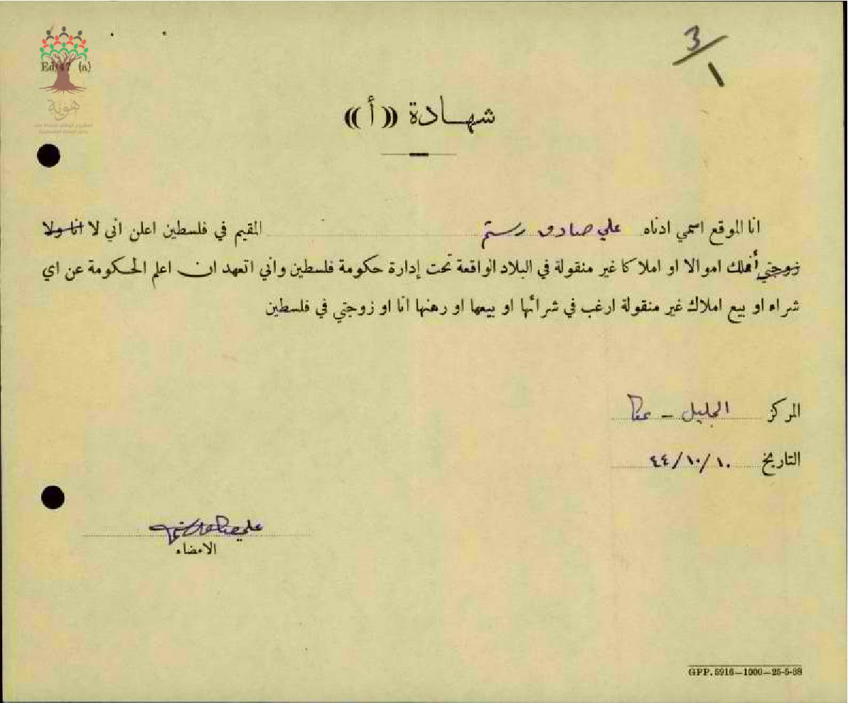 شهادة نفي ملكية-علي صادق رستم/عكا