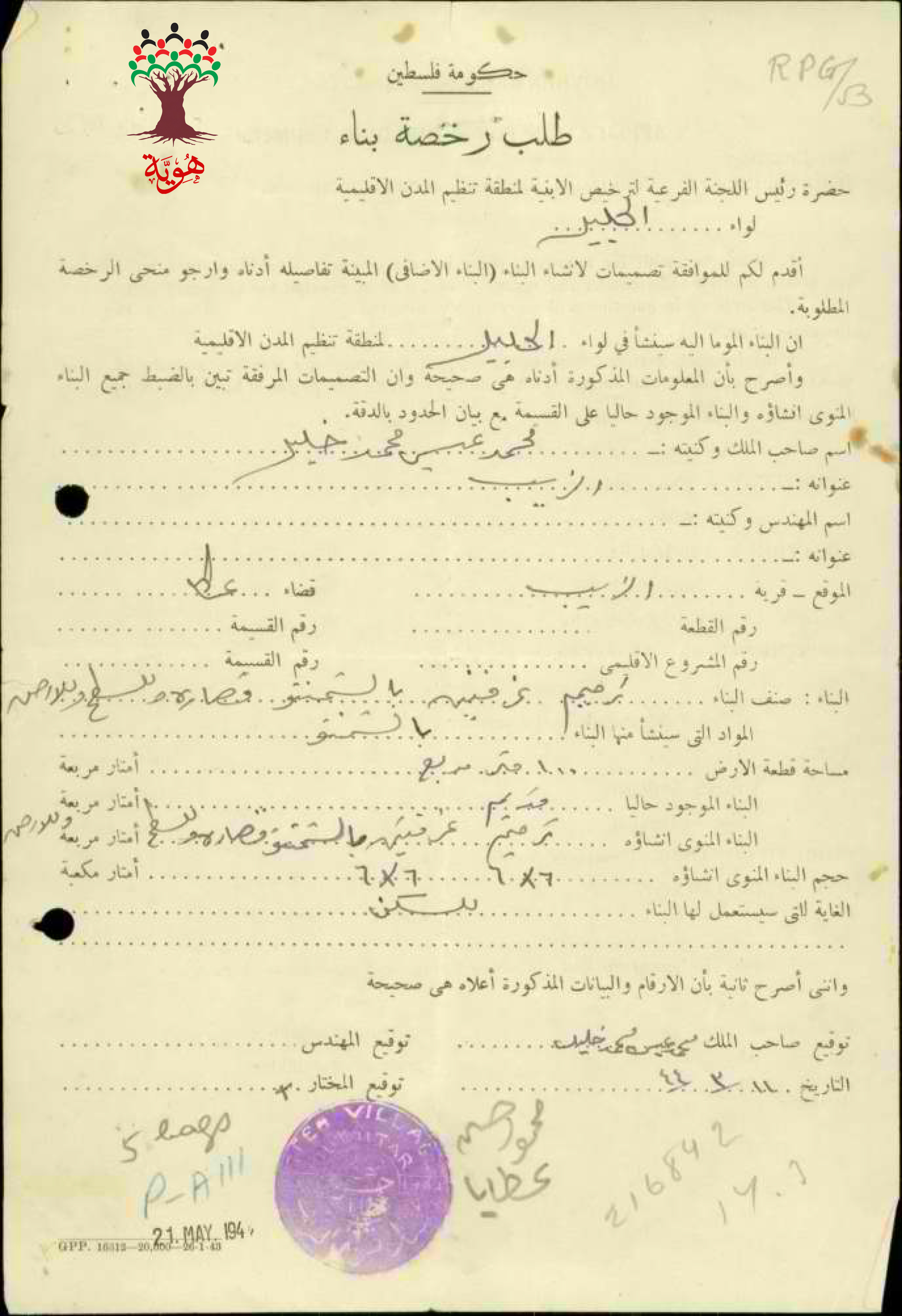 طلب رخصة بناء في الزيب لترميم غرفتين - محمد عيسى محمد خليل