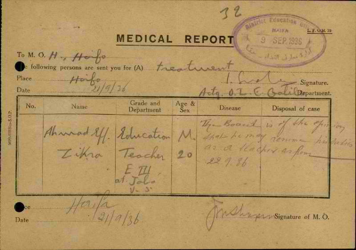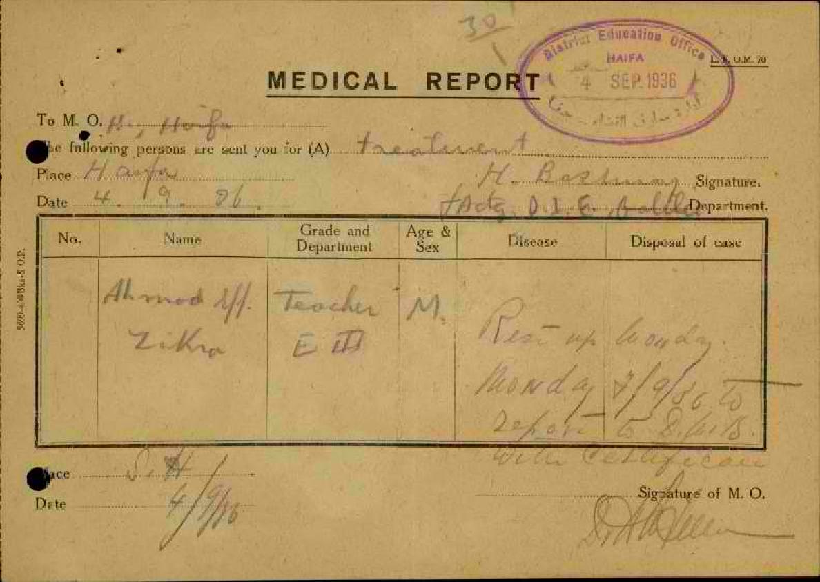 تقارير عن غياب المعلم أحمد ذكرى بسبب المرض بموجب تقارير طبية