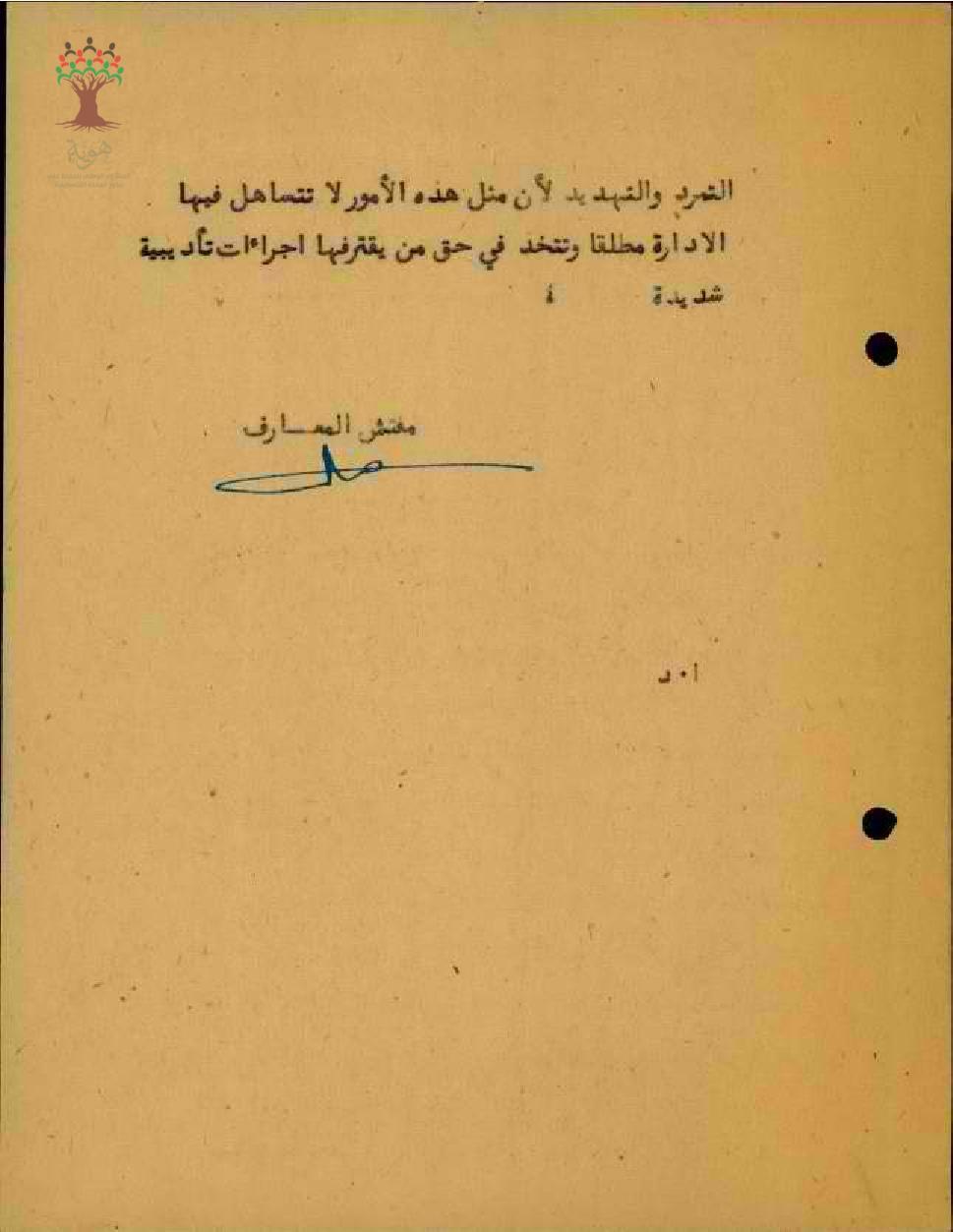 رسالة من مفتش المعارف الى المعلم علي رستم بخصوص سلوكه في المدرسة