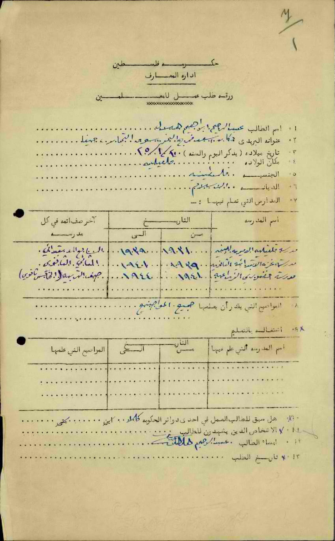 ورقة طلب عمل للمعلم عبد الرحيم هلال/قلقيلية