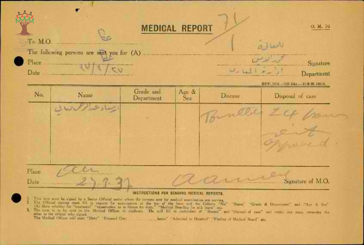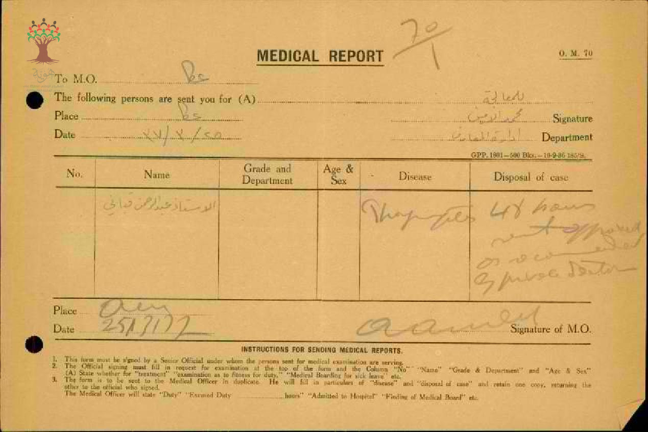 تقارير طبية لغياب المعلم عبد الرحمن قباني