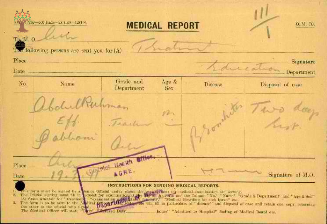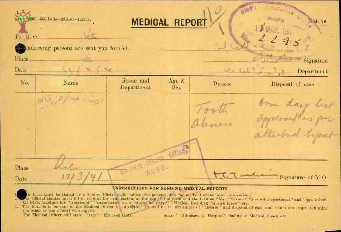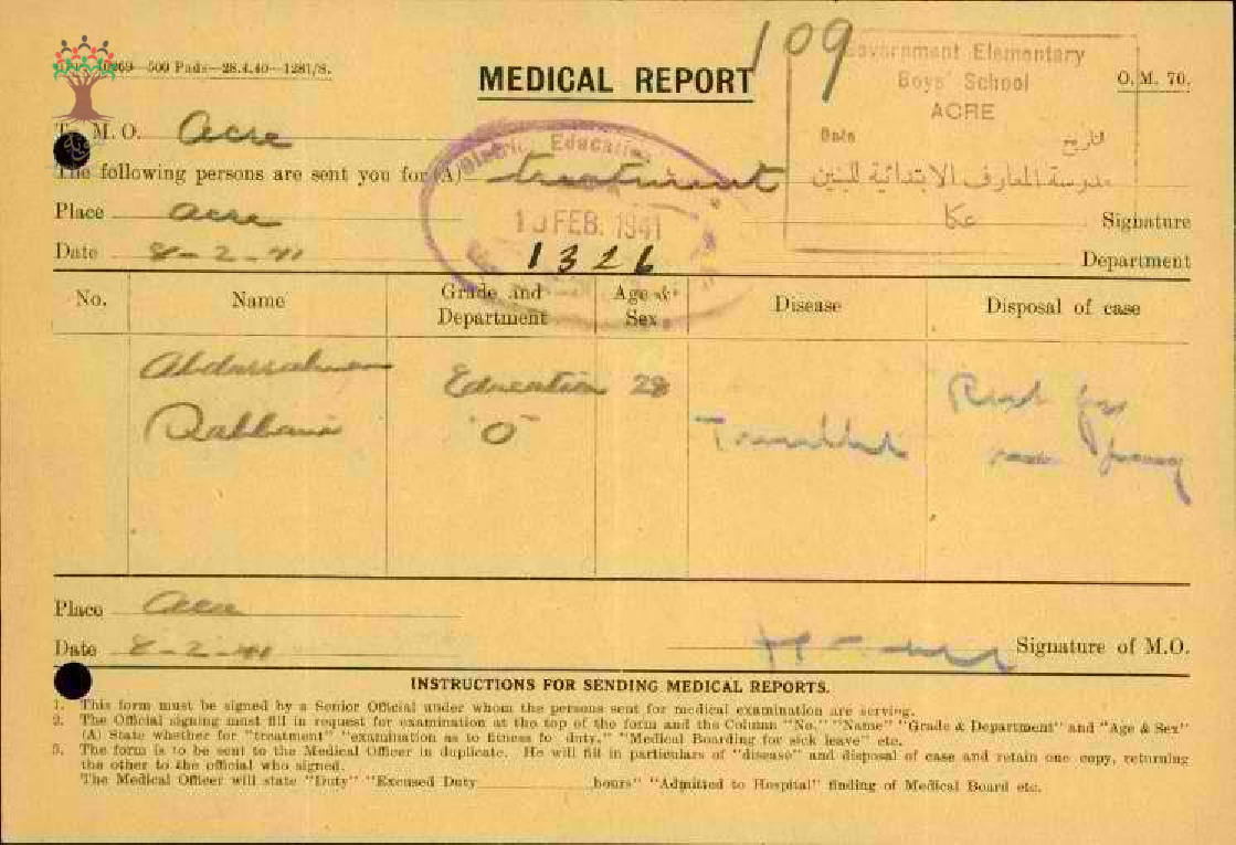 تقارير طبية لغياب المعلم عبد الرحمن قباني