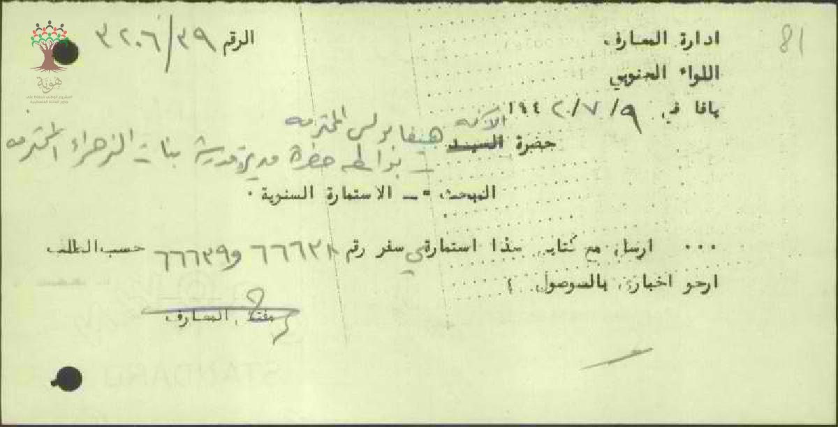 رساله من مفتش المعارف الى المعلمه هيفاء بولس بخصوص الاستمارة السنوية