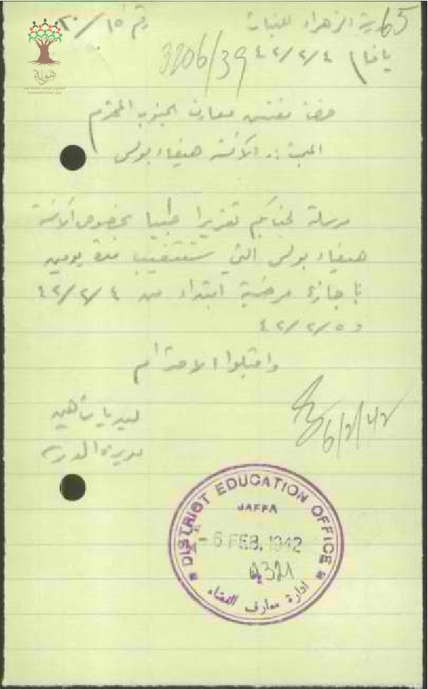 رساله من مديرة المدرسه الى مفتش المعارف بخصوص تقرير طبيا المعلمه هيفاء بولس