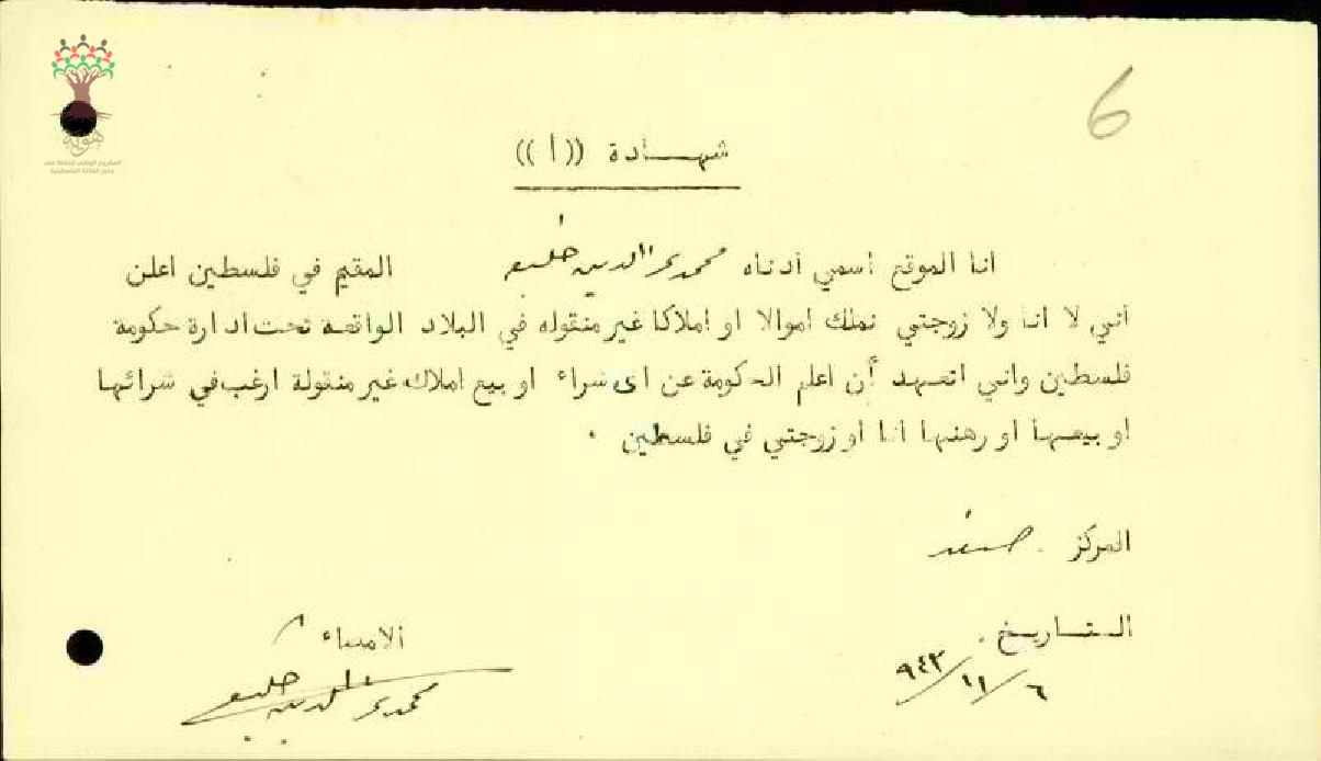 رسالة شهادة من المعلم محمد عز الدين خليف بأني لا أملك وزوجتي اموال وأملاك منقولة وغير منقولة